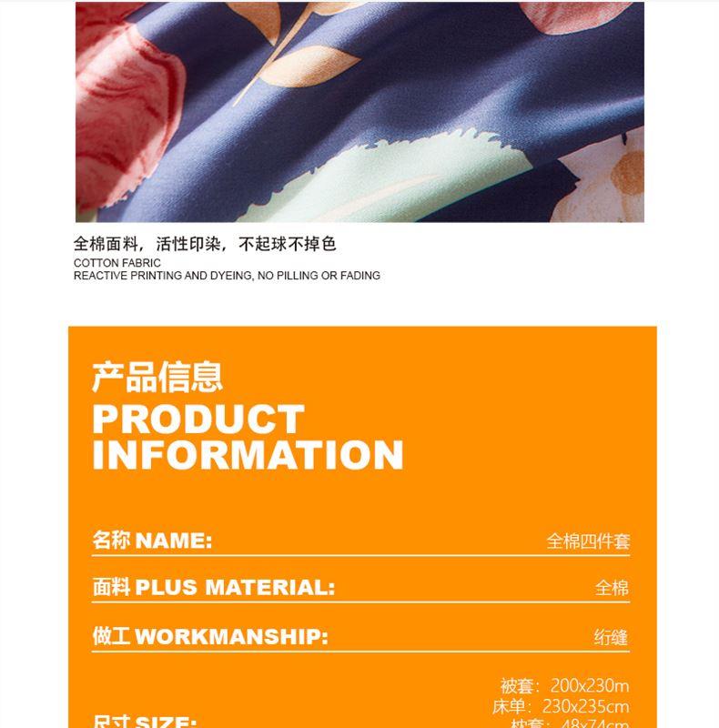 商品名称:啄木鸟乐活棉全棉四件套-乌科班 商品货号:ZMT-0008 商品型号:规格:被套200x230cm 床单230x235cm 枕套48x74cm 商品材质:面料:全棉
