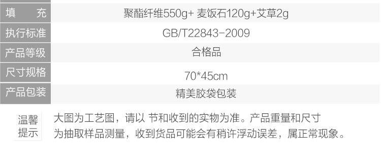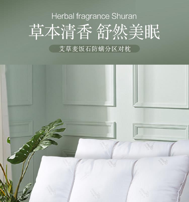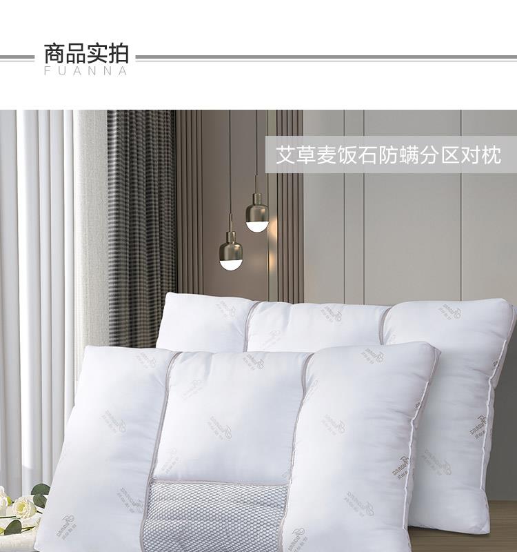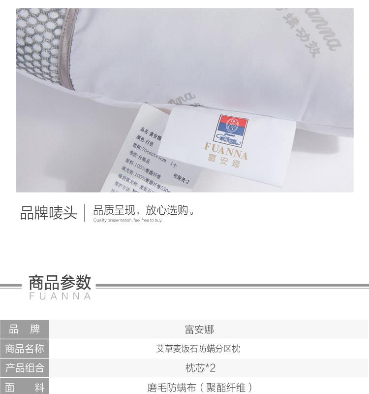 产品名称:富安娜 艾草麦饭石抗菌对枕 面料:磨毛防螨布 填充物重量:聚酯纤维550g+麦饭石120g+艾草2g 规格:70*45cm-2个