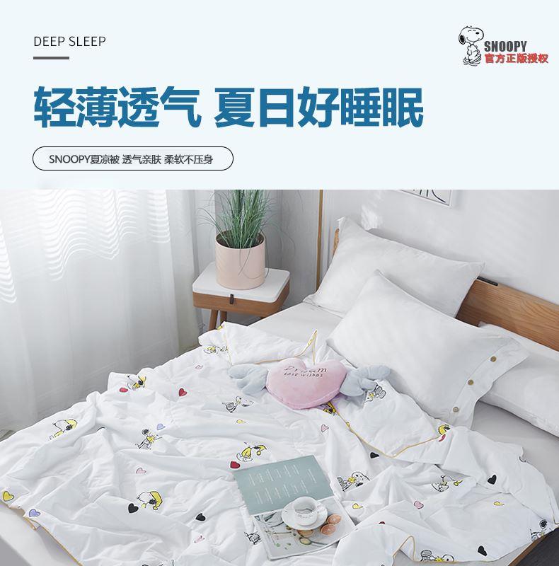 产品品名:史努比·彩色心情夏被 型号:SNB07-1 材质:贡缎绒(全聚酯纤维)