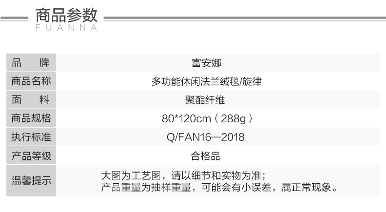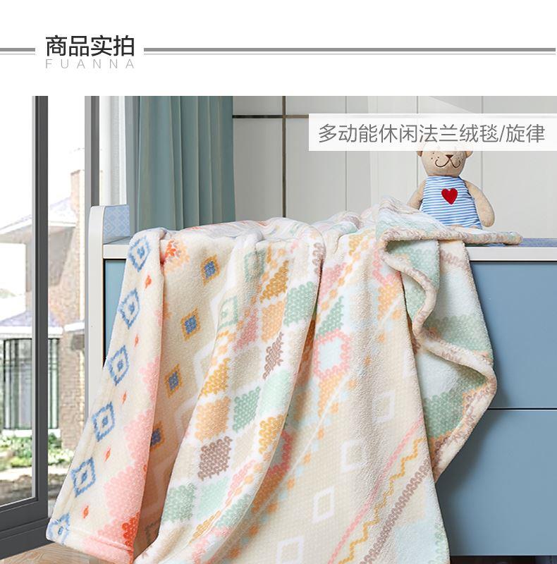 产品名称:富安娜 多功能休闲法兰毯-旋律 产品材质:法兰绒288G 规格:80*120CM