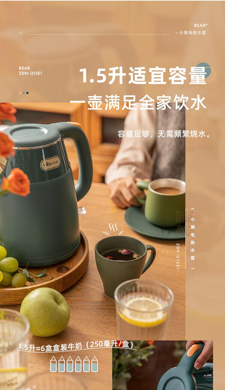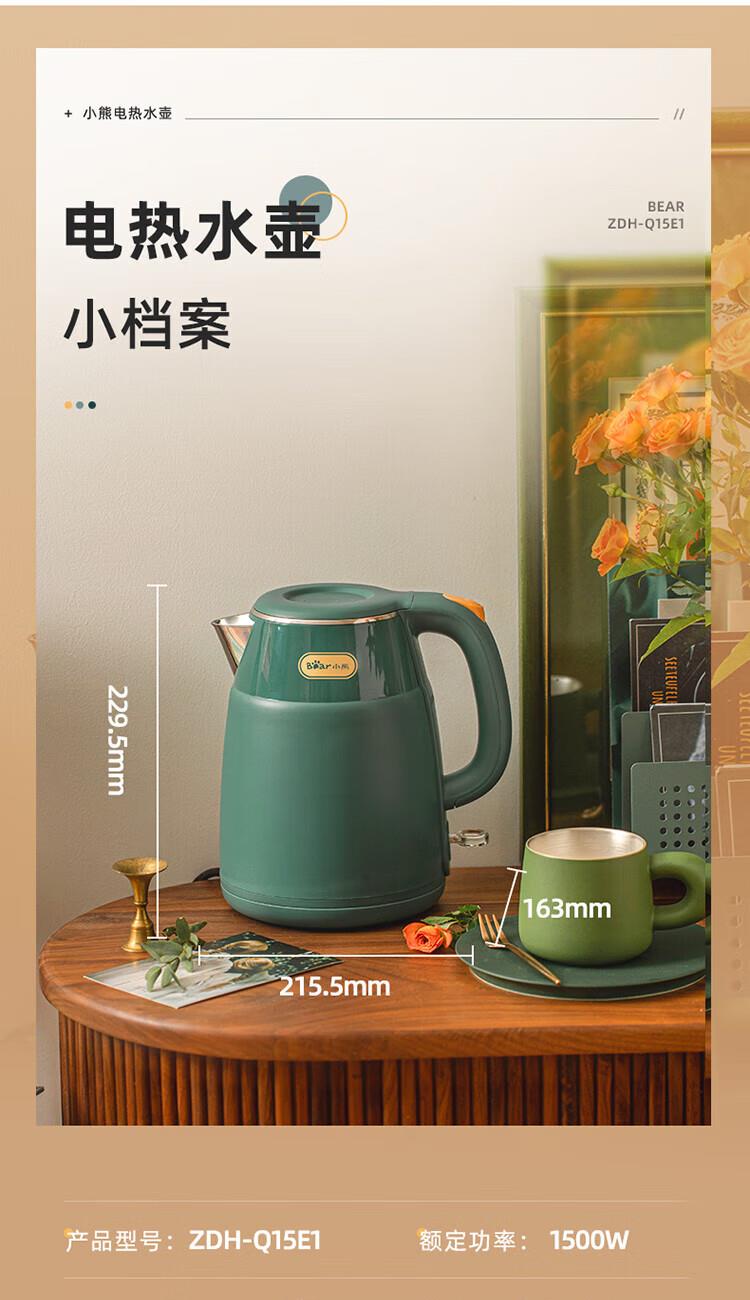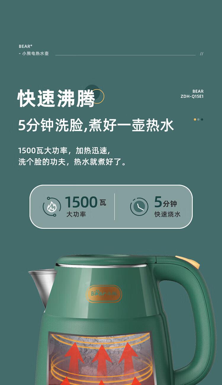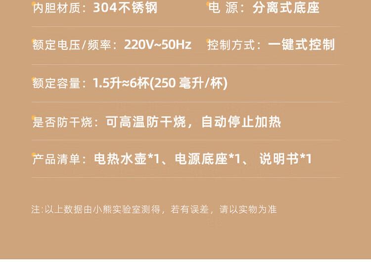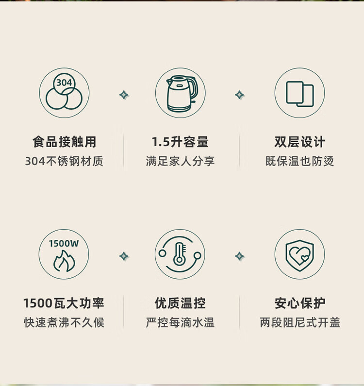 参数: 1、容量1.5L 2、额定功率1500W 3、产品重量1KG 4、包装尺寸235*225*265mm 5、箱数6台/箱