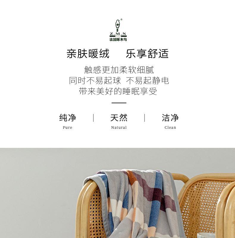啄木鸟经典休闲多用暖阳绒毛毯-松耶