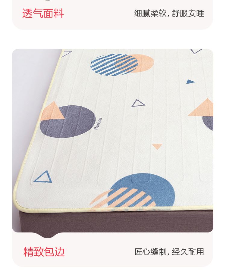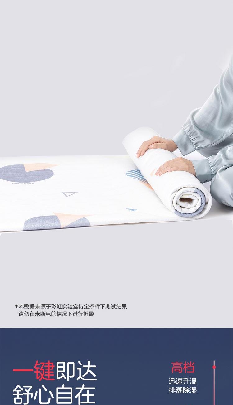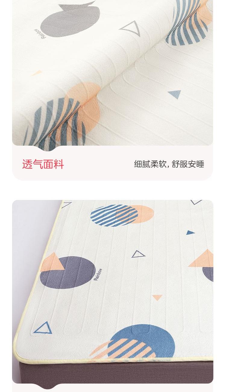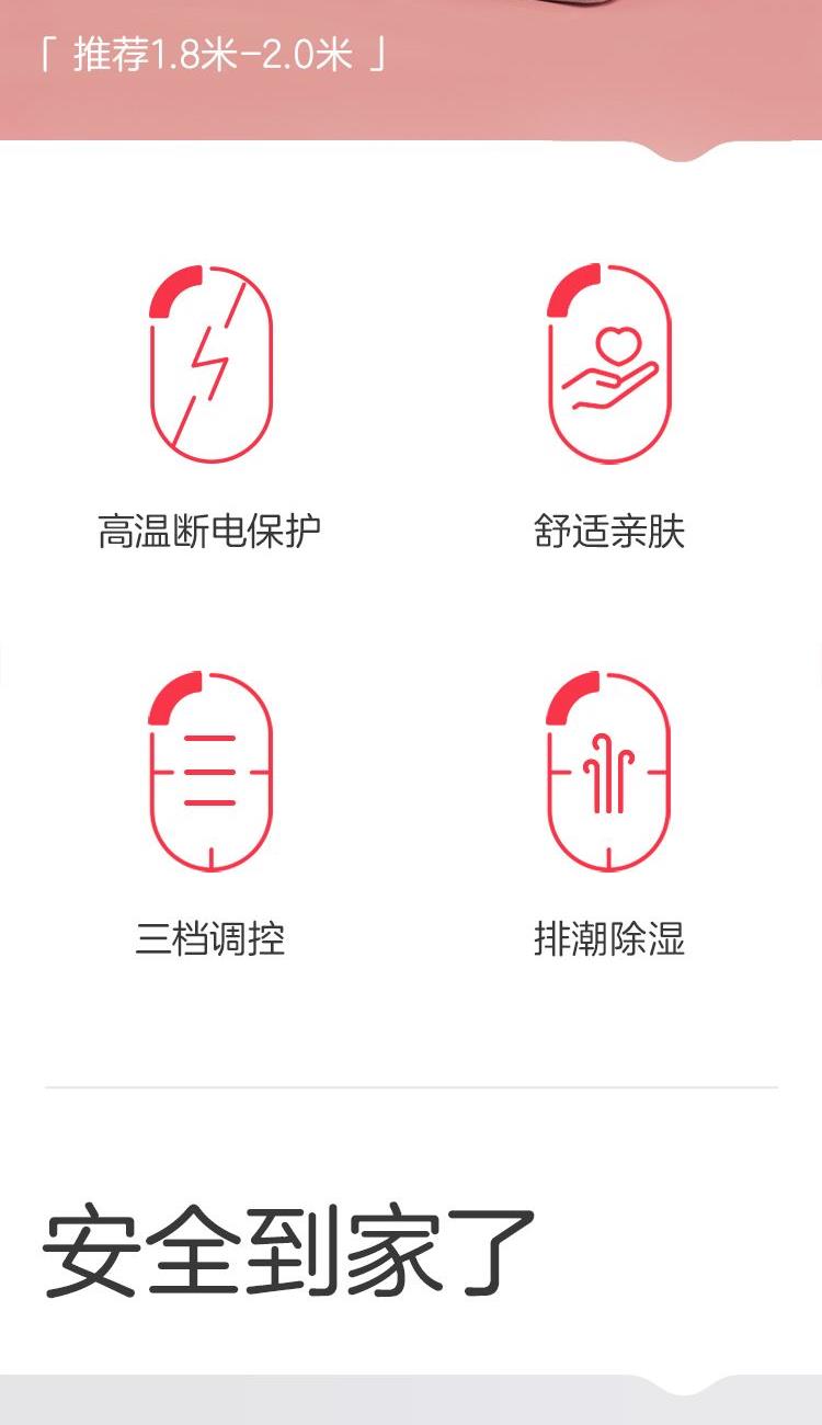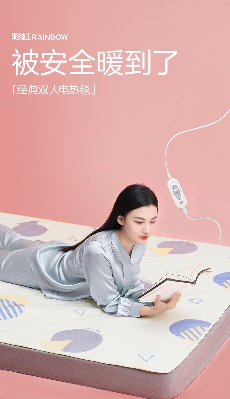 参数: 型号:TT200×180-4X 功率:140W 功能:三档调控,排潮取暖 面料:化纤 包装:彩盒 卖点: 1、全线路安全保护调温电热毯,多挡调温,遇水遇尿不漏电 2、特大宽幅印花面料,透气舒适 3、采用双层螺旋发热线和特别安全保护控制器,实现高温断电保护 4、排潮除螨,四季可用,低能耗,每晚不到一度电!