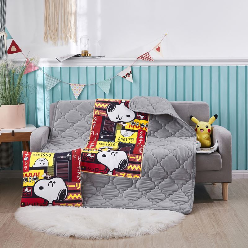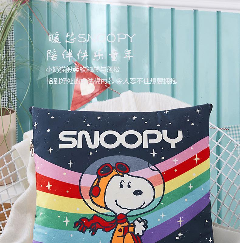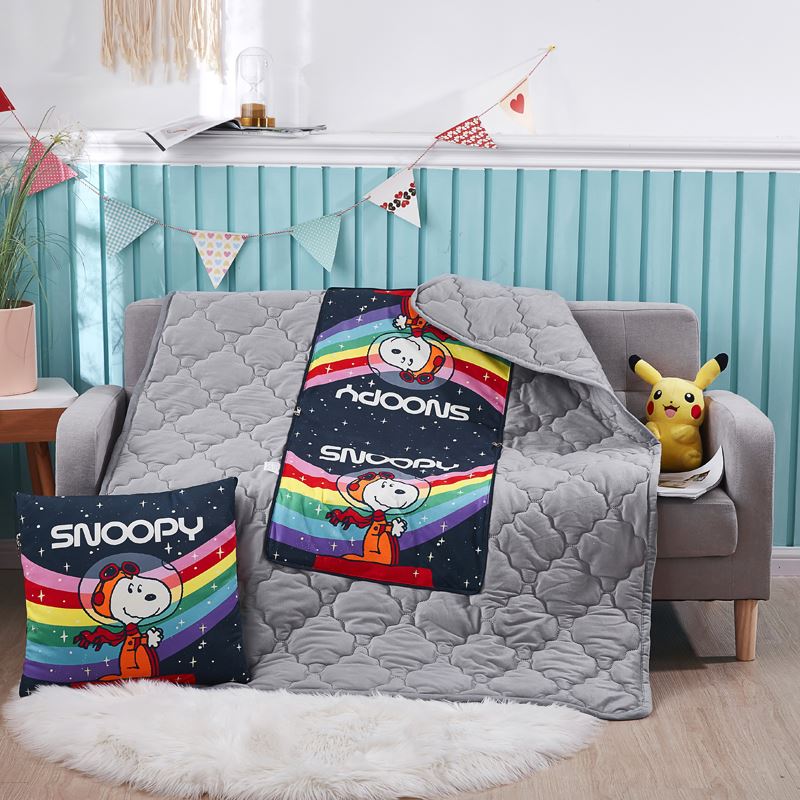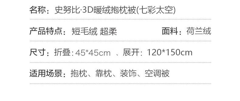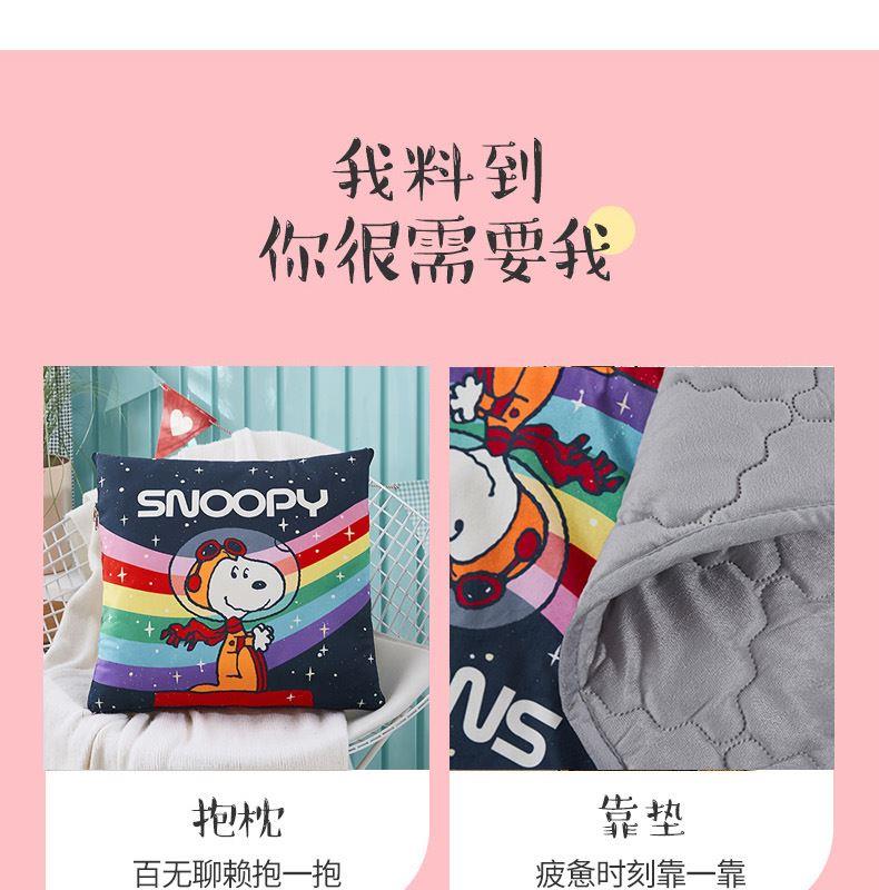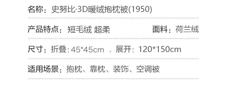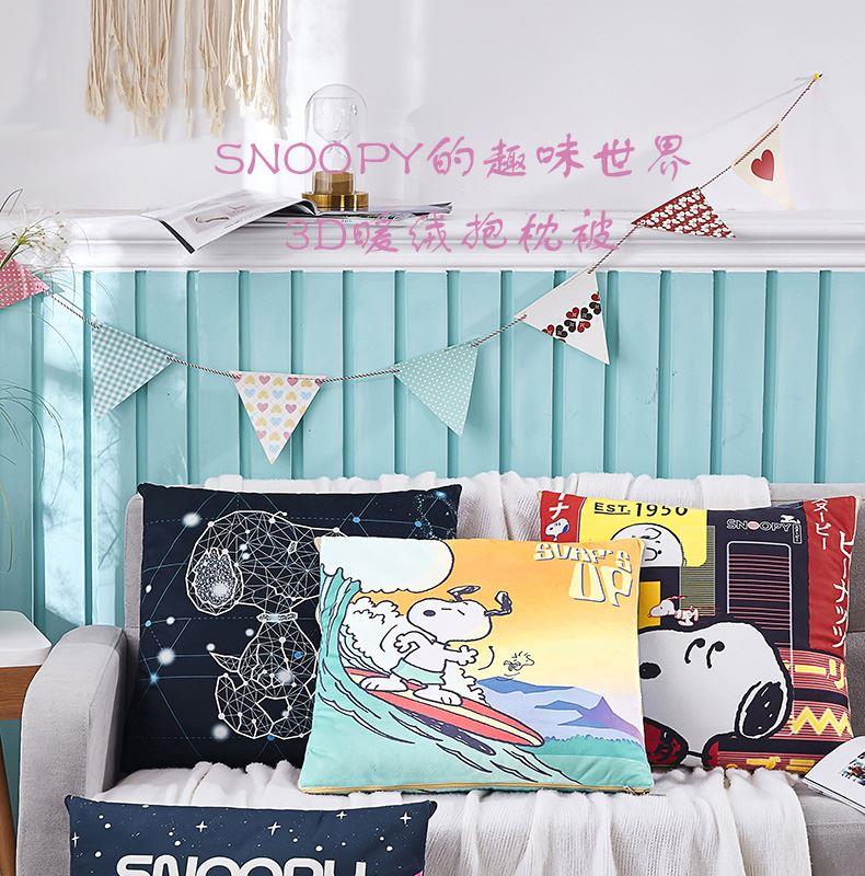 产品品名:Snoopy·史努比4D暖绒抱枕被 型号:SNB01-5 材质:3D暖绒(全聚酯纤维)