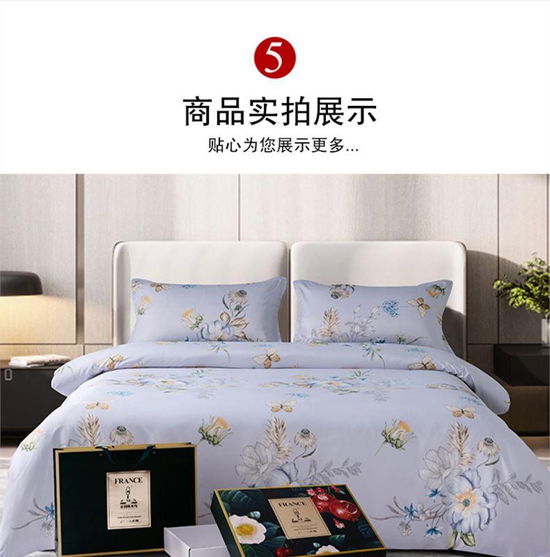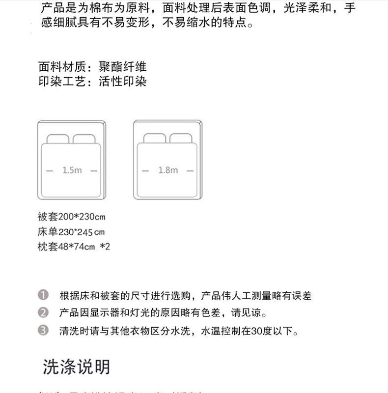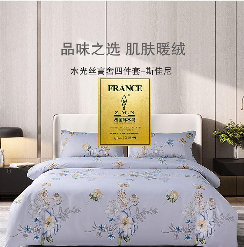 商品名称:啄木鸟水光丝高奢四件套-斯佳尼 商品货号:ZHT-0005 商品型号:规格:被套200x230cm 床单230x250cm 枕套48x74cm 商品材质:面料:水光丝