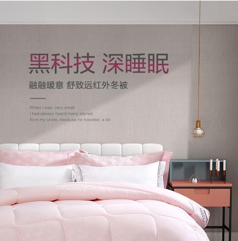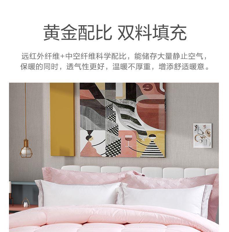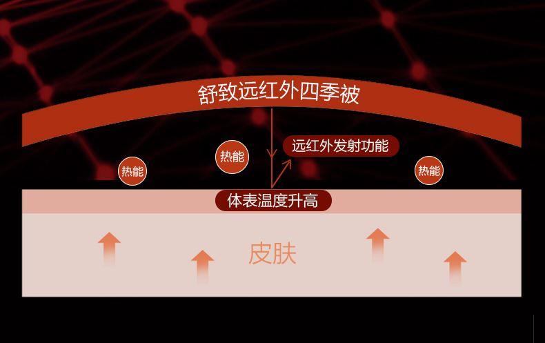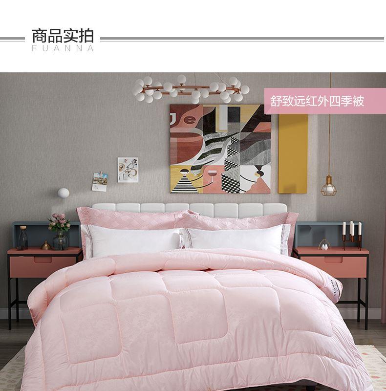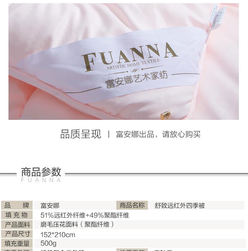 产品名称:富安娜 舒致远红外四季被 材质:磨毛压花(聚酯纤维) 填充:51%远红外纤维+49%聚酯纤维 规格:203*229cm