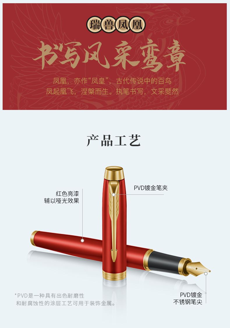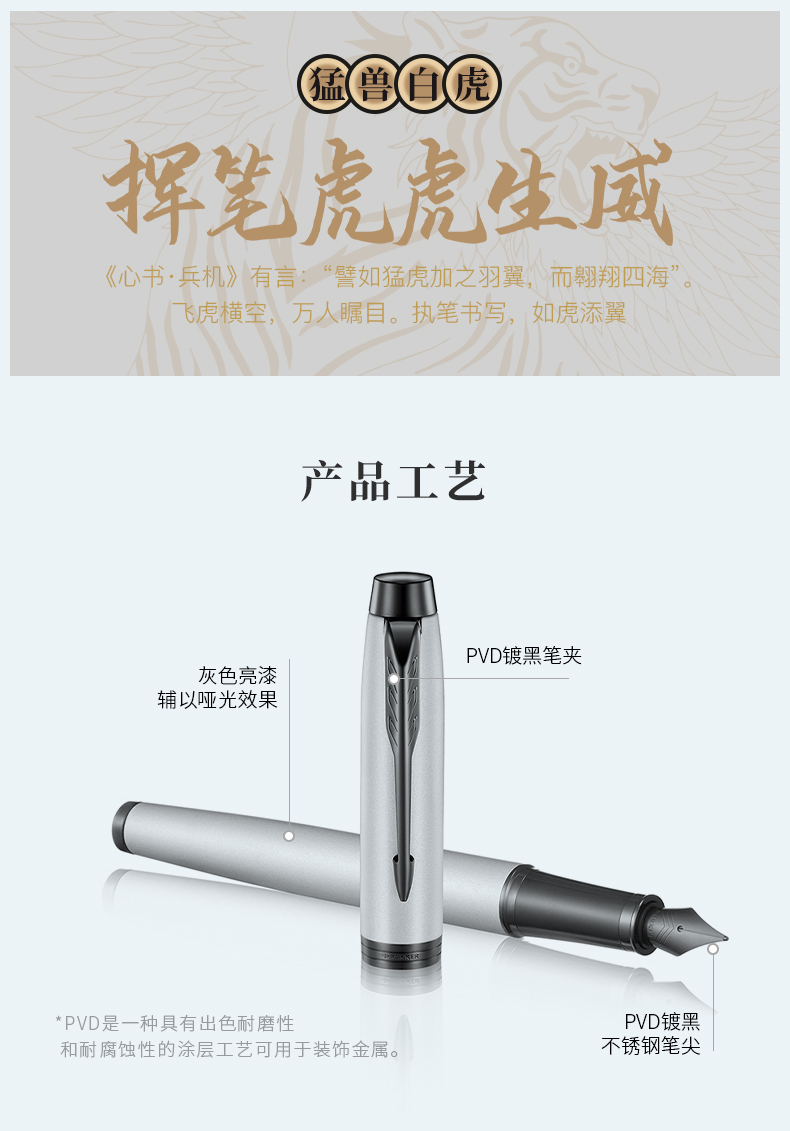 [规格]笔长138mm直径12.6mm净重约32g [粗细]F尖 [笔尖]PVD镀黑不锈钢笔尖 [材质]笔杆黑色亮漆哑光效果,PVD镀黑笔夹 [配置]笔、墨水、笔袋、派克手提袋、礼盒