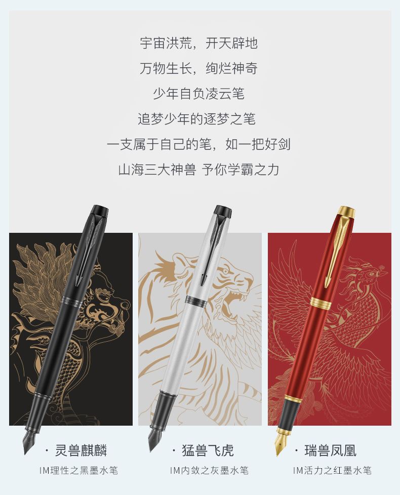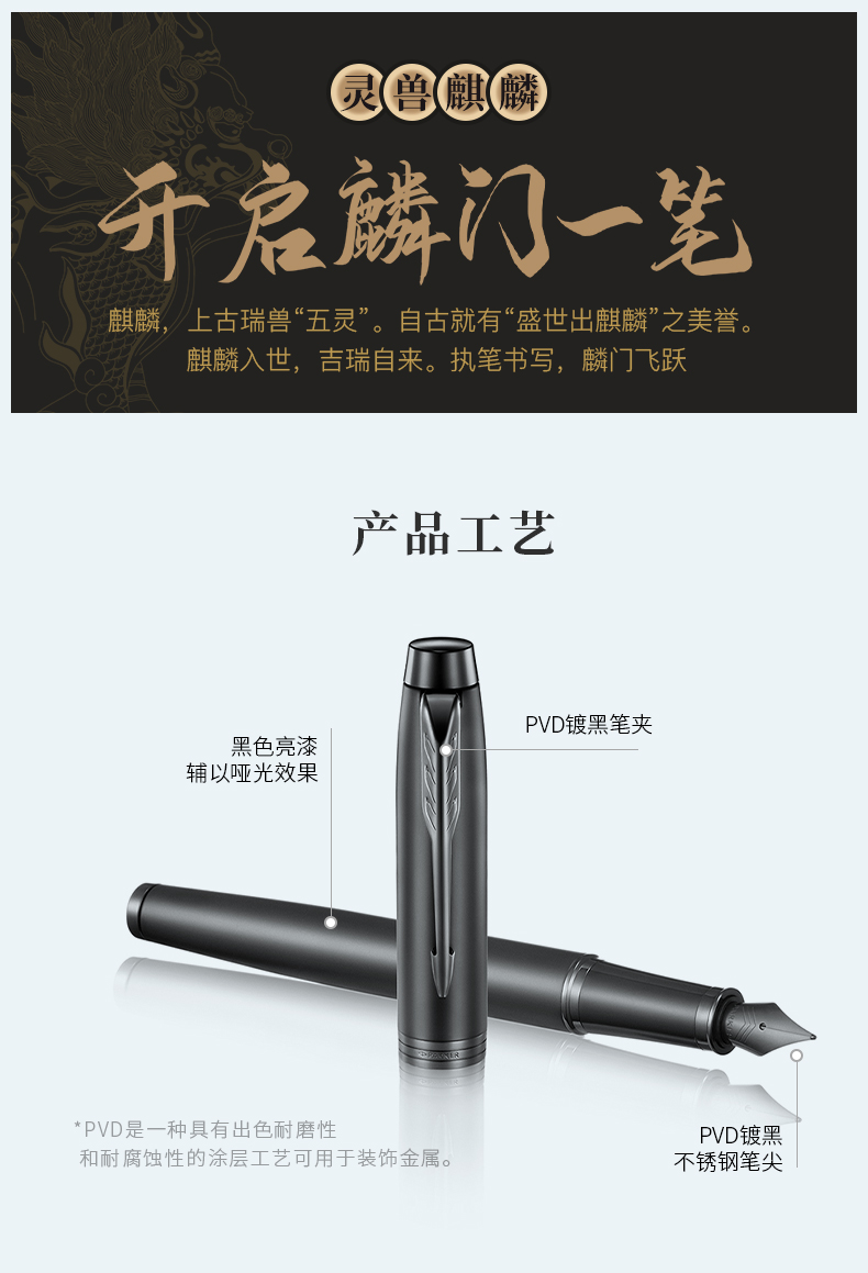 派克麒麟+IM理性黑黑夹墨水笔