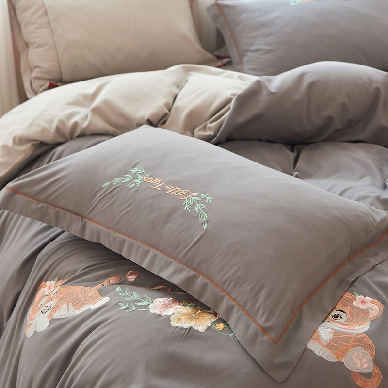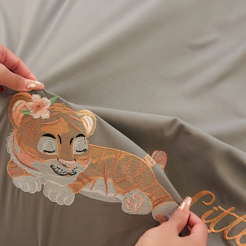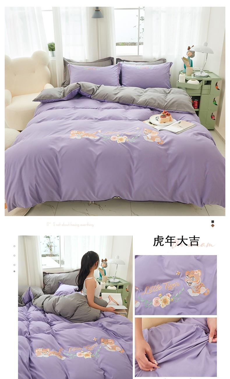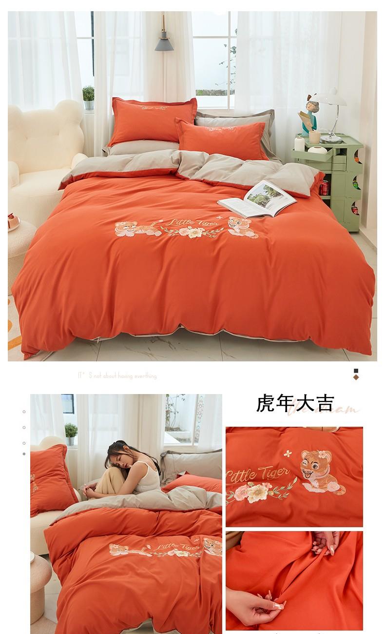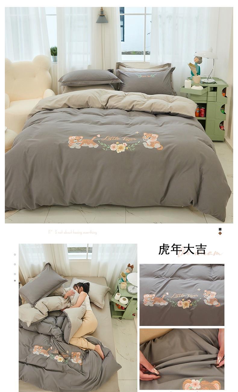 聚银萌萌虎四件套床上四件套床单简约亲肤纯棉简约床品套件1米8床双人被套床单床上用品