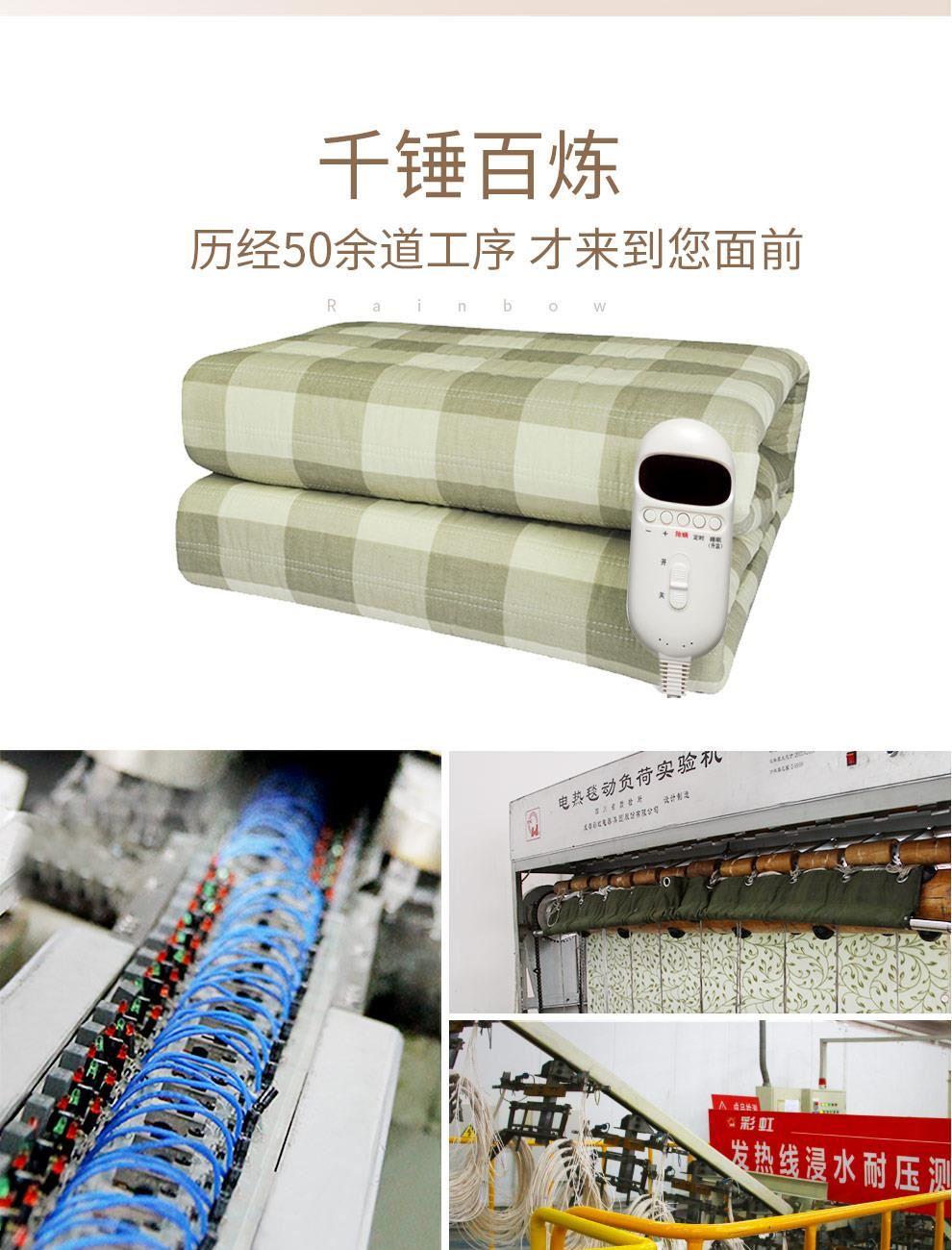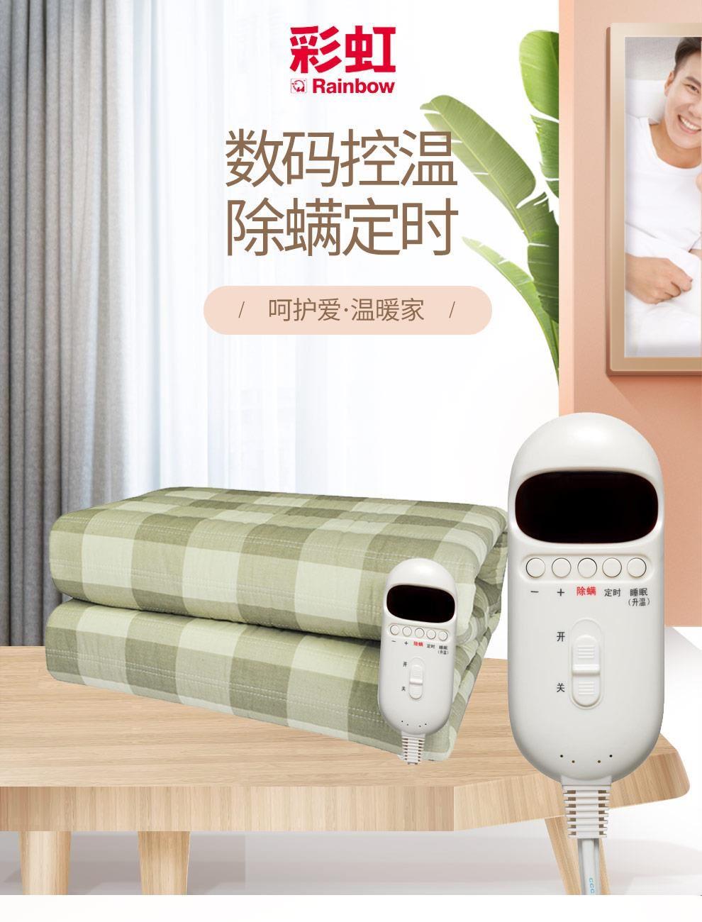 彩虹1521S双控双温档调温纯棉双人电热毯1.8*1.5米