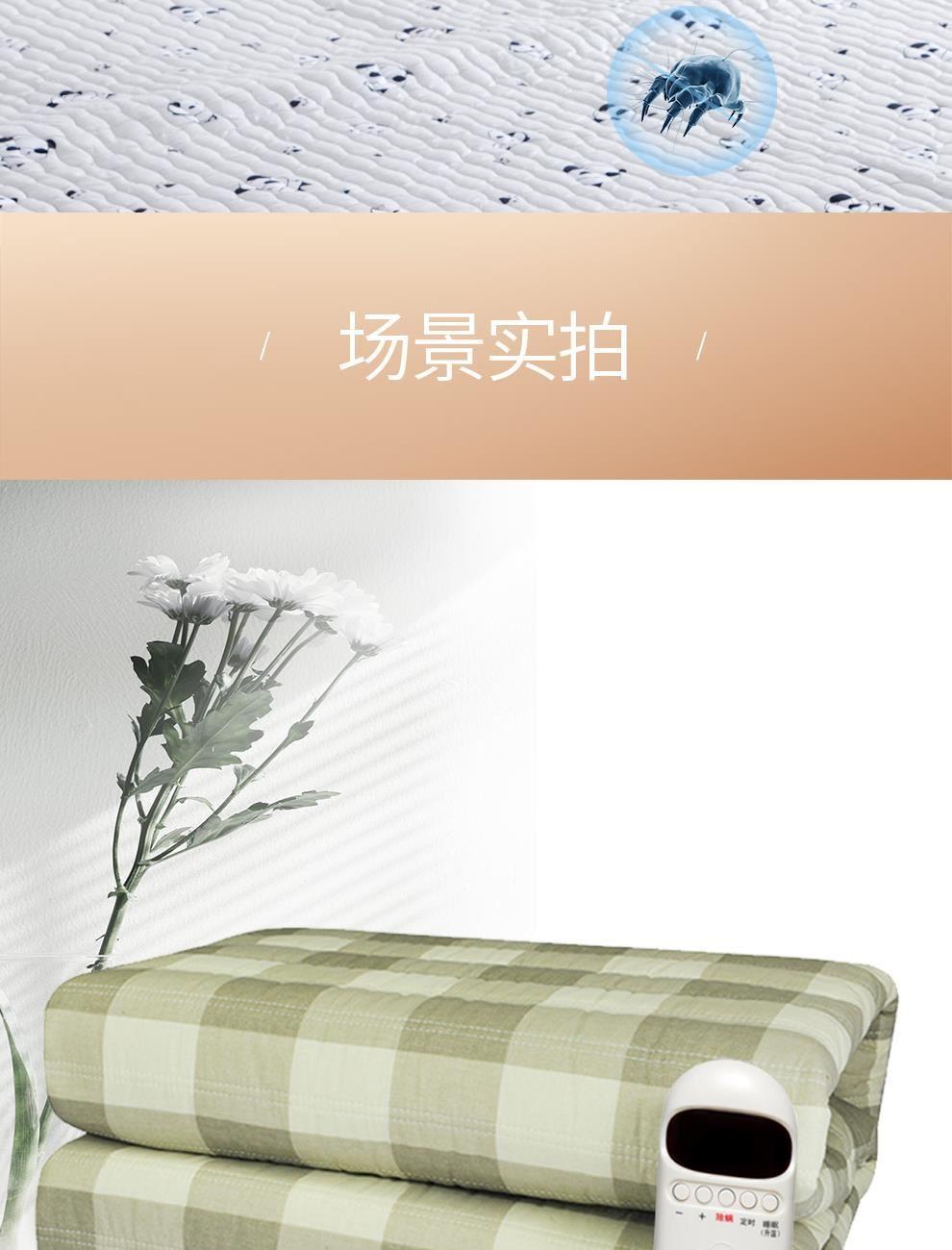 参数 型号:TK180×150-2X 功率:140W 功能:20-46℃广域控温,1度1调;1-9小时定时,12小时自动停止加热、一键舒睡、一键除螨 面料:双面纯棉 包装:箱包 卖点 1、20-46℃数显控温,1度1调 2、智能感温,自动恒温 3、一键舒睡 4、1-9小时定时,12小时自动停止加热 5、一键安全除螨 6、温度记忆 7、每晚不到1度电