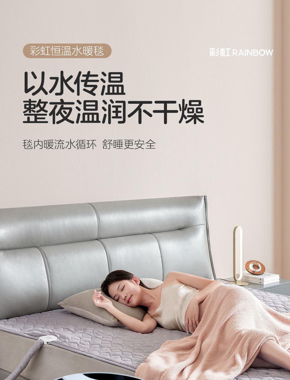 彩虹C191驱潮保暖除螨磨毛面料双人恒温水暖毯2*1.8米