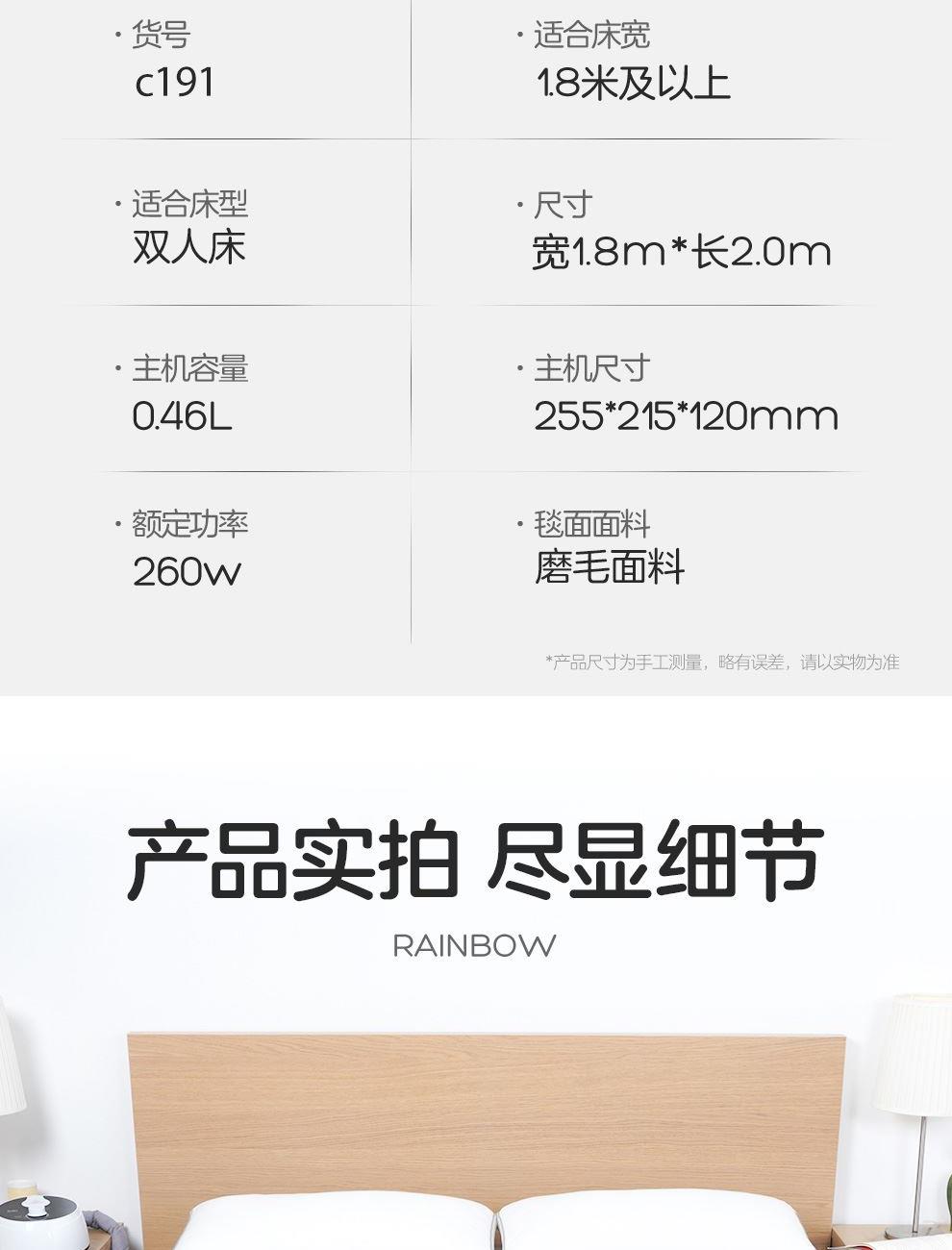 彩虹C191驱潮保暖除螨磨毛面料双人恒温水暖毯2*1.8米 彩虹C191驱潮保暖除螨磨毛面料双人恒温水暖毯2*1.8米