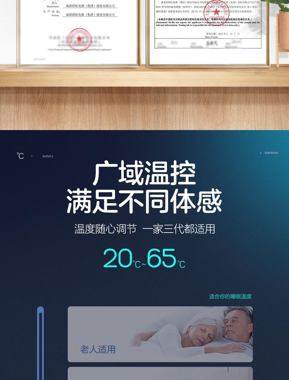 彩虹C191驱潮保暖除螨磨毛面料双人恒温水暖毯2*1.8米 礼品已成功加入PPT!
