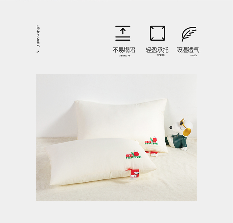 产品品名:Snoopy·史努比原棉对枕 型号:SNB02-8 材质:原棉(全聚酯纤维)3D棉