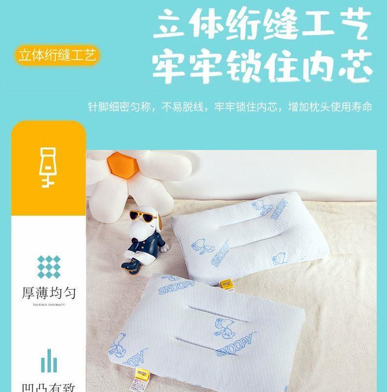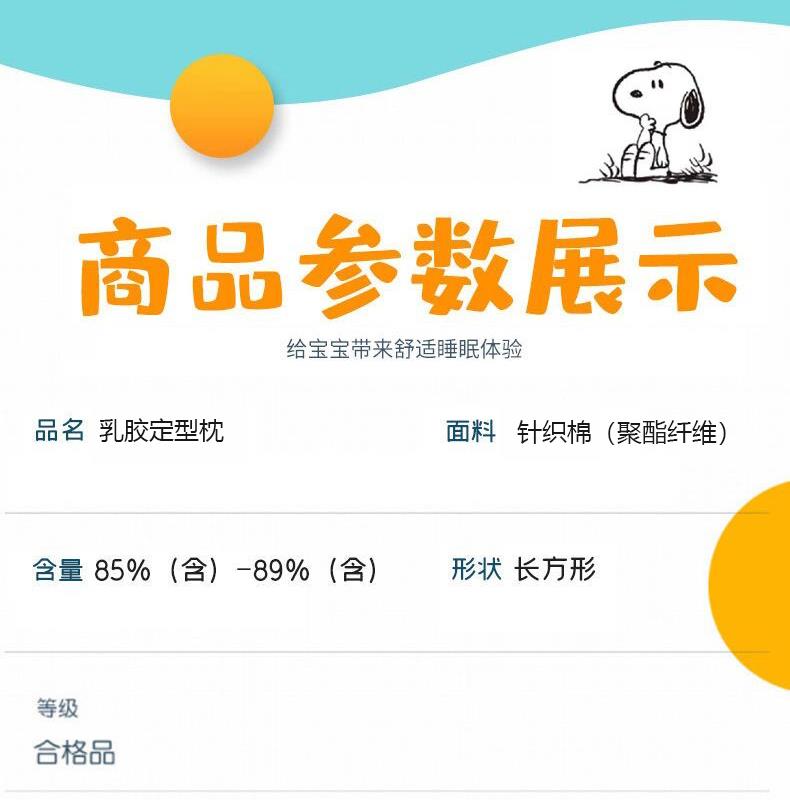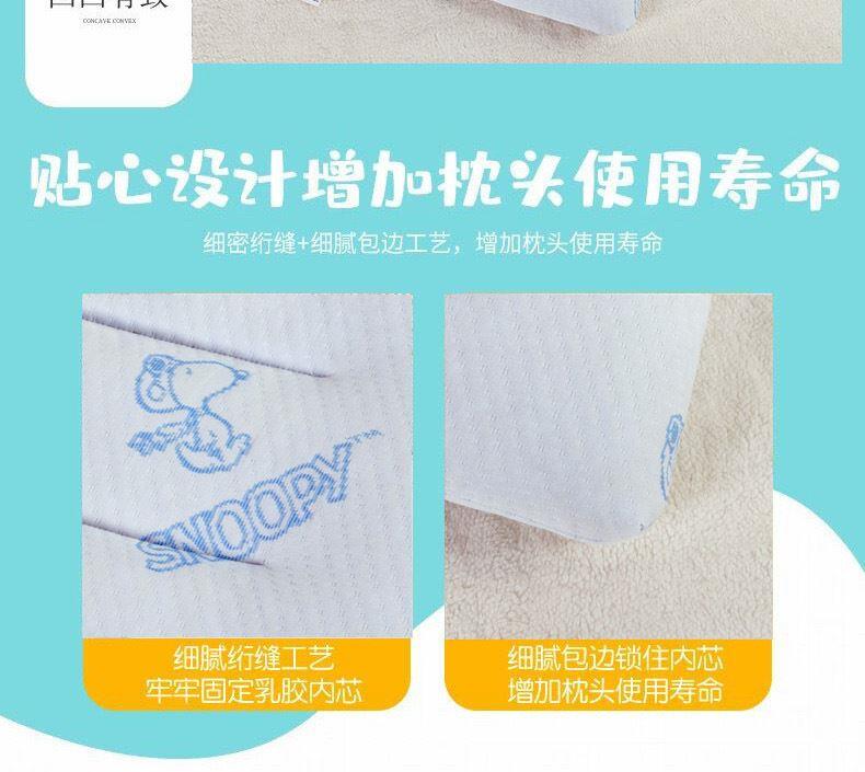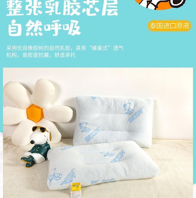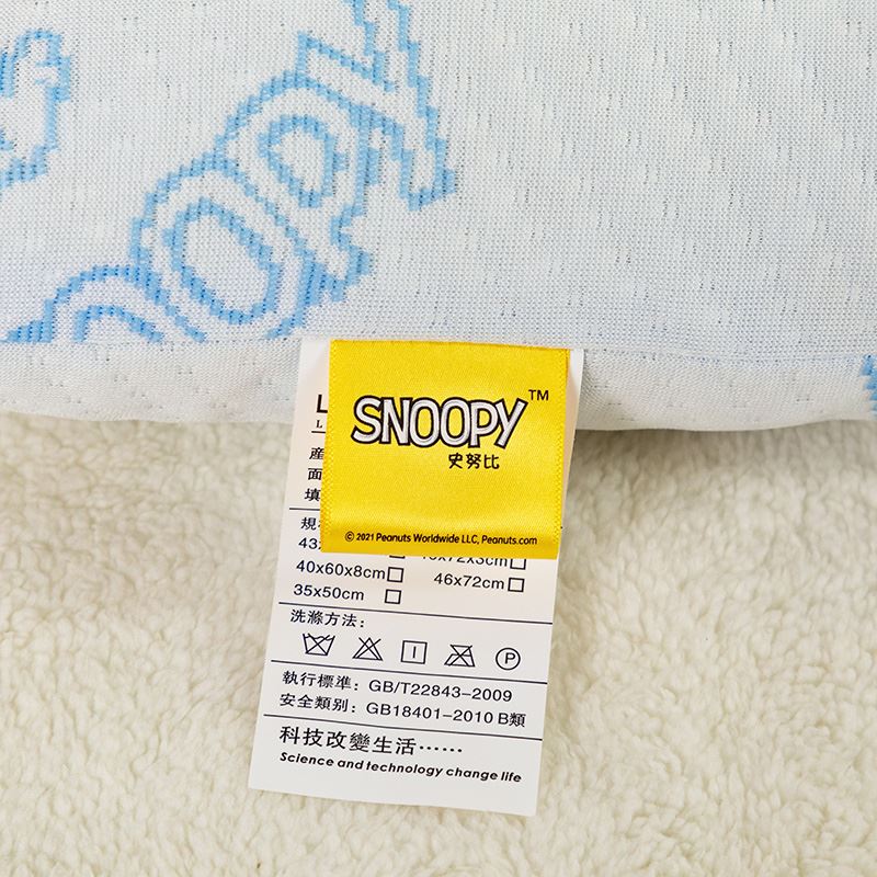 产品品名:Snoopy·史努比乳胶颗粒枕(定型) 型号:SNB02-3 材质:针织棉(全聚酯纤维)纯乳胶 乳胶原产国:泰国