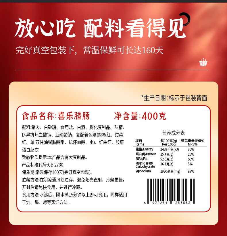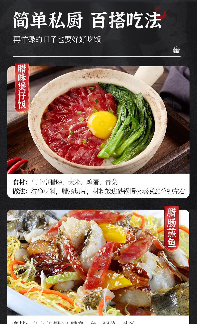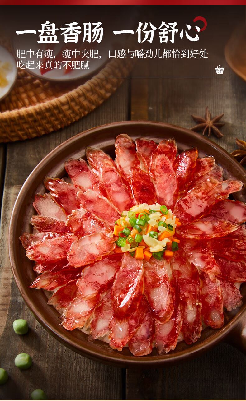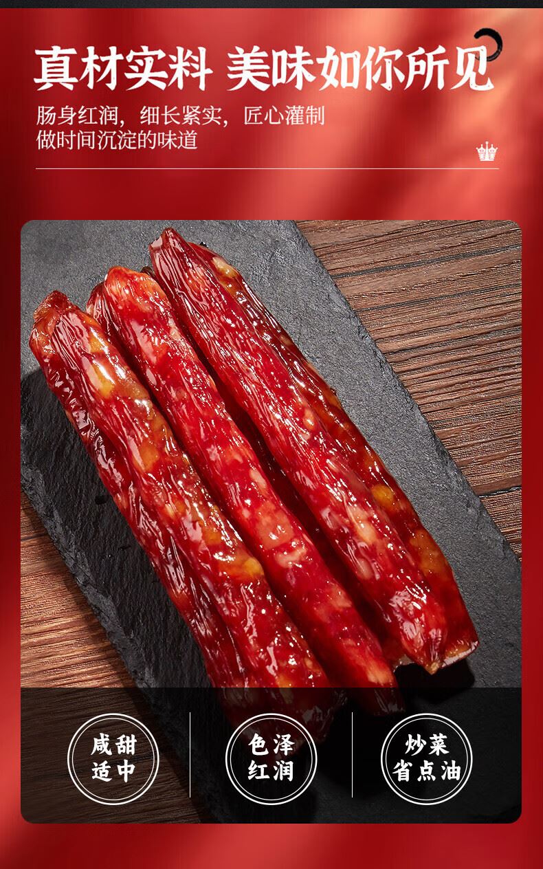 特产品类;广式腊肠 包装形式;袋装 食用方法;烹饪食用 加工工艺;不烟熏 保质期;120天