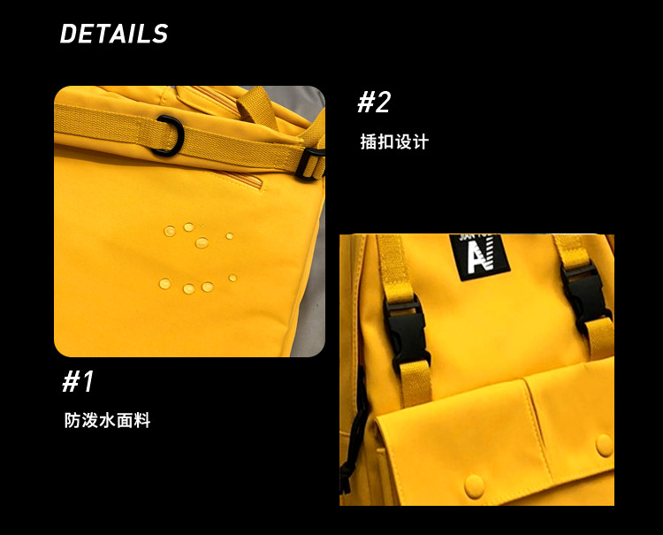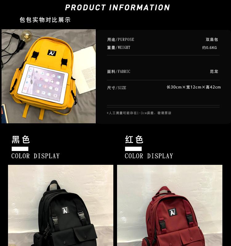 产品参数: 型号:休闲包3511 颜色:黑色、红色、黄色、绿色 尺寸:42*30*12cm 材质:尼龙 重量:约0.6kg 商品简介: 一款四色休闲背包,材质轻盈,多储物收纳空间,超大容量,满足日常出行需求。