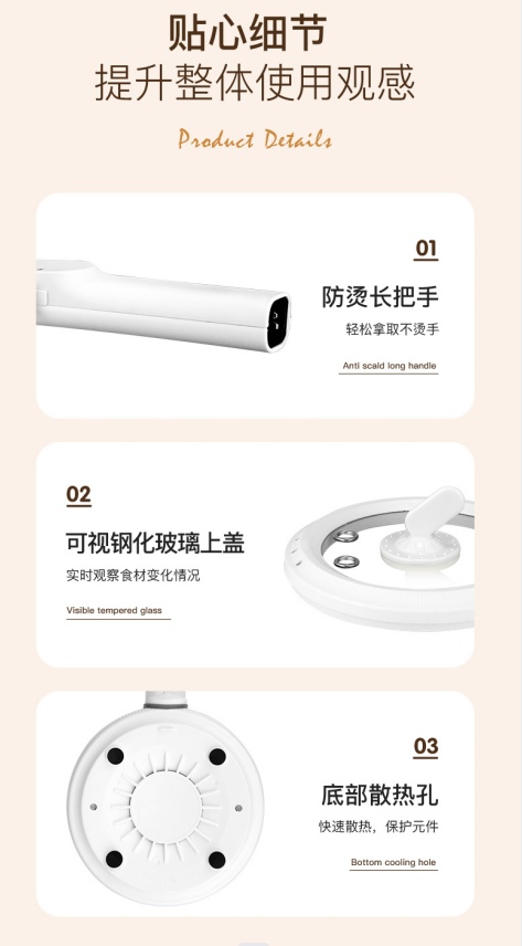 产品型号:DZG1301额定电压:220V~ 额定功率:700W 产品容量:1.6L 产品材质:玻璃,304不锈钢,PP 商品条码:6941220251503