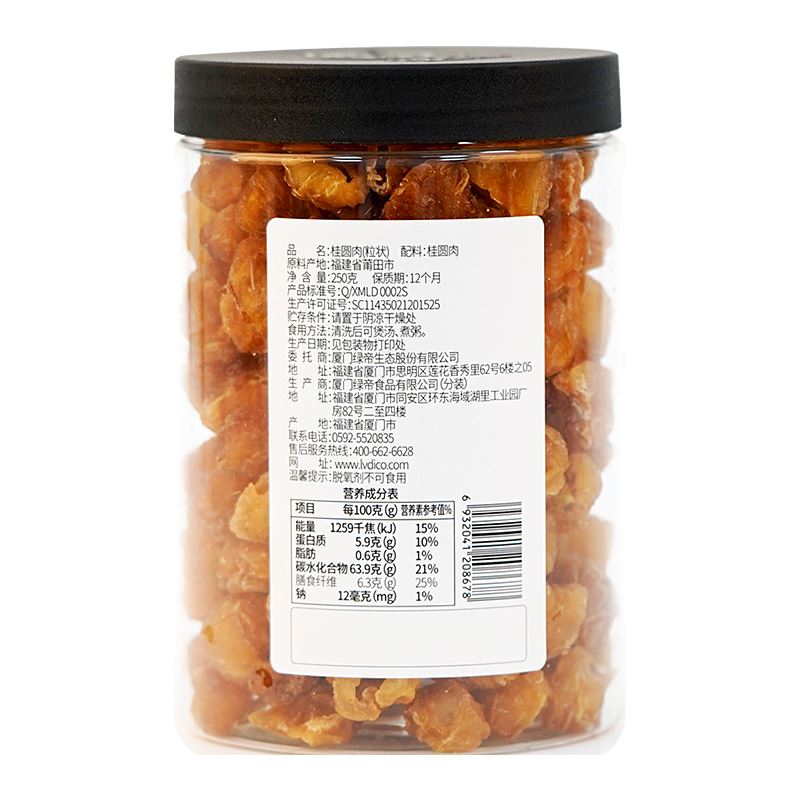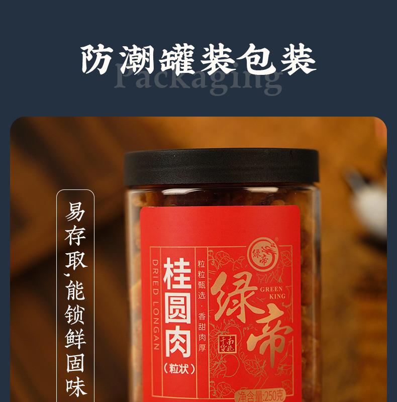 商品名称:绿帝桂圆粒 重量:250g/罐 产地:福建莆田 保质期:365天