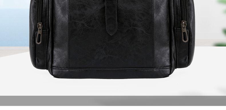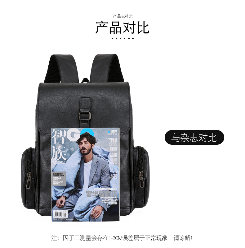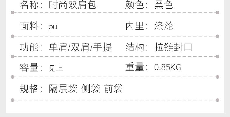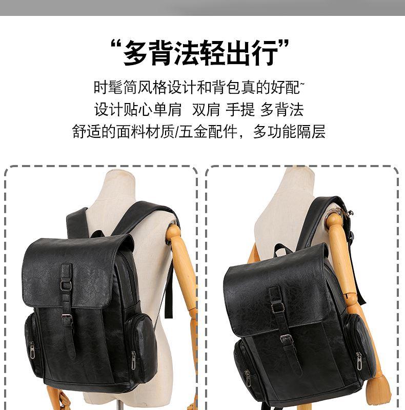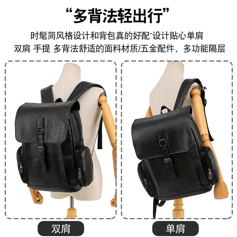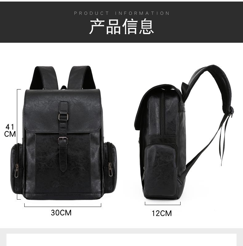 产品参数: 型号:休闲包3225 颜色:黑色 尺寸:41*30*12cm 材质:皮革PU材质 重量:约0.85kg 功能:单肩,双肩,手提 商品简介: 百搭潮流时尚双肩包,采用优质皮革面料,让背包更立体有型