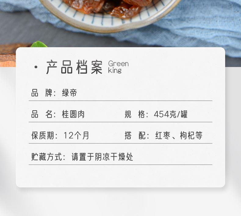 商品名称:绿帝桂圆肉 重量:454g/罐 产地:福建莆田 保质期:365天