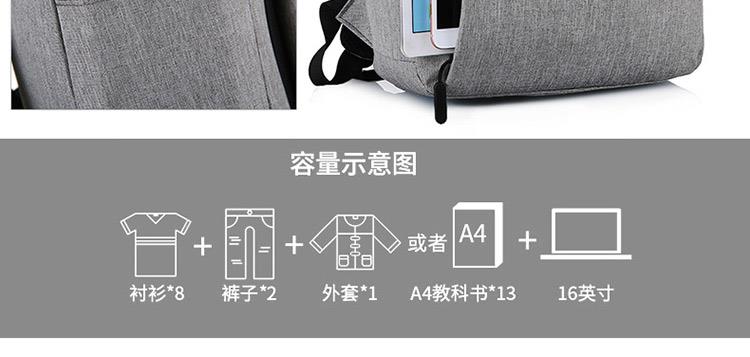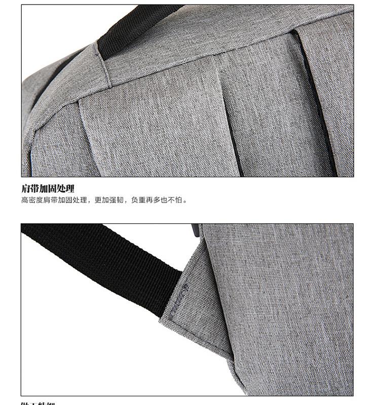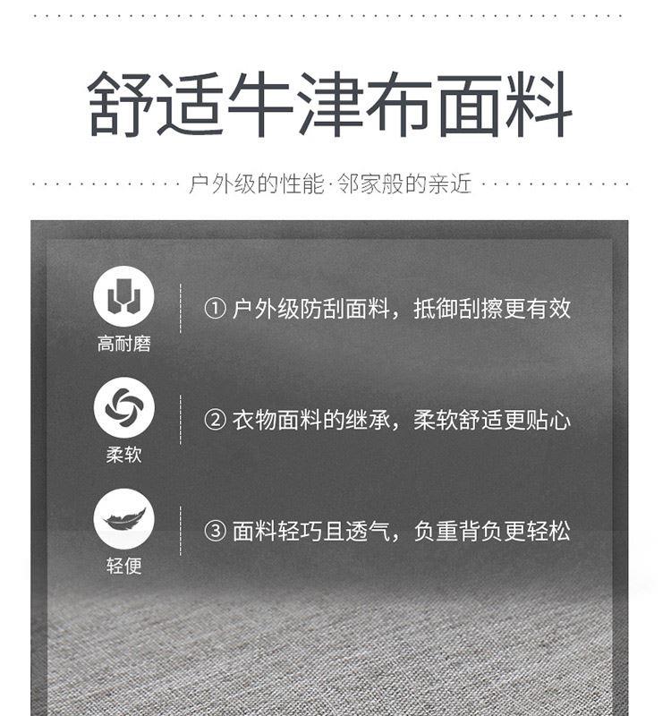 产品参数: 型号:背包3103 颜色:黑,灰,蓝色,酒红 尺寸:28*12*41CM 材质:涤纶牛津布 重量:0.56kg 商品简介: 面料轻巧且透气,负重背负更轻松,合理尺寸、轻松收纳!