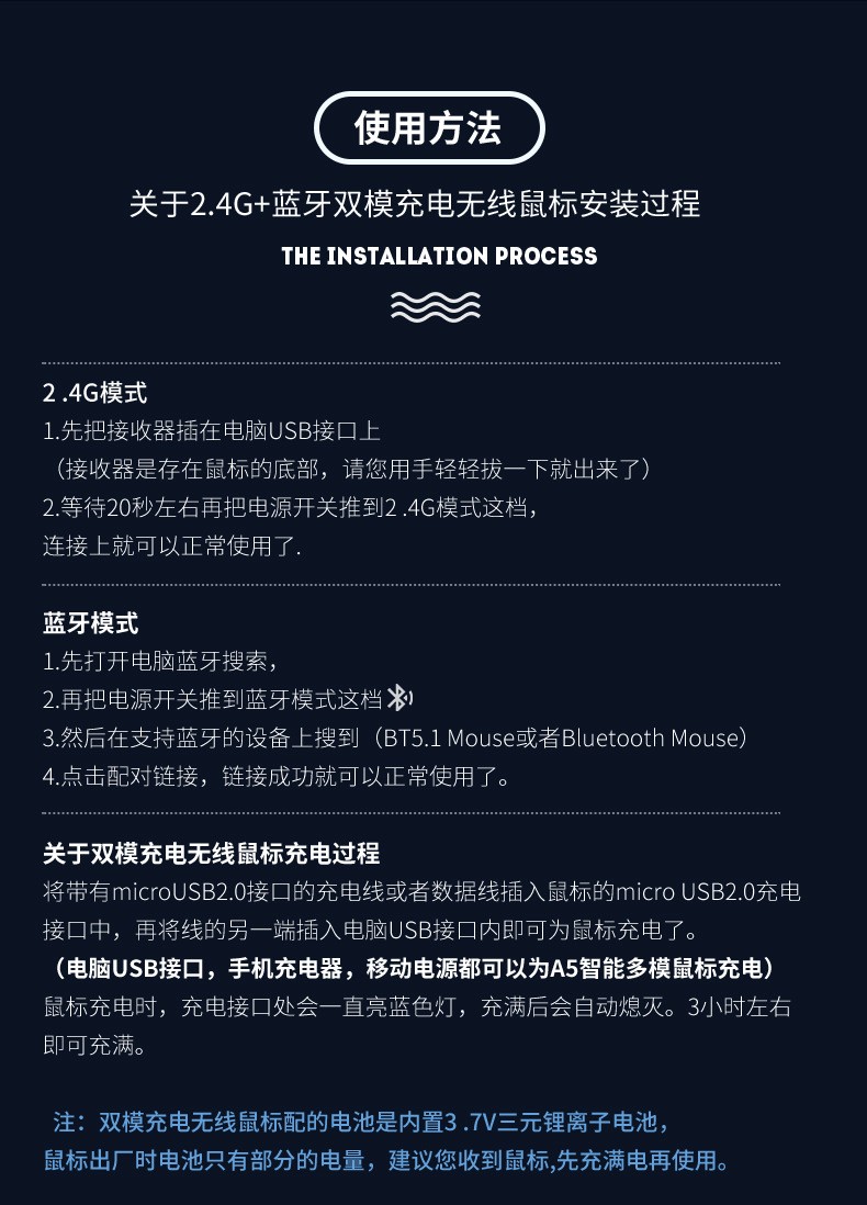 蓝牙:5.0 产品材质:ABS材质+电镀 尺寸展开:115*58*22mm 电池类型:循环充电
