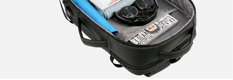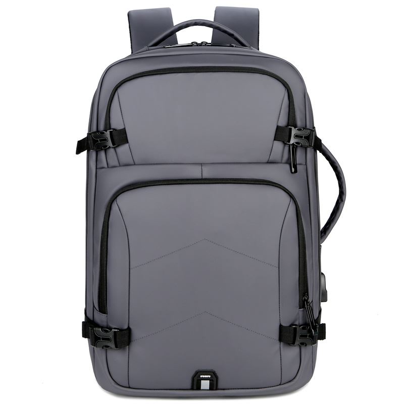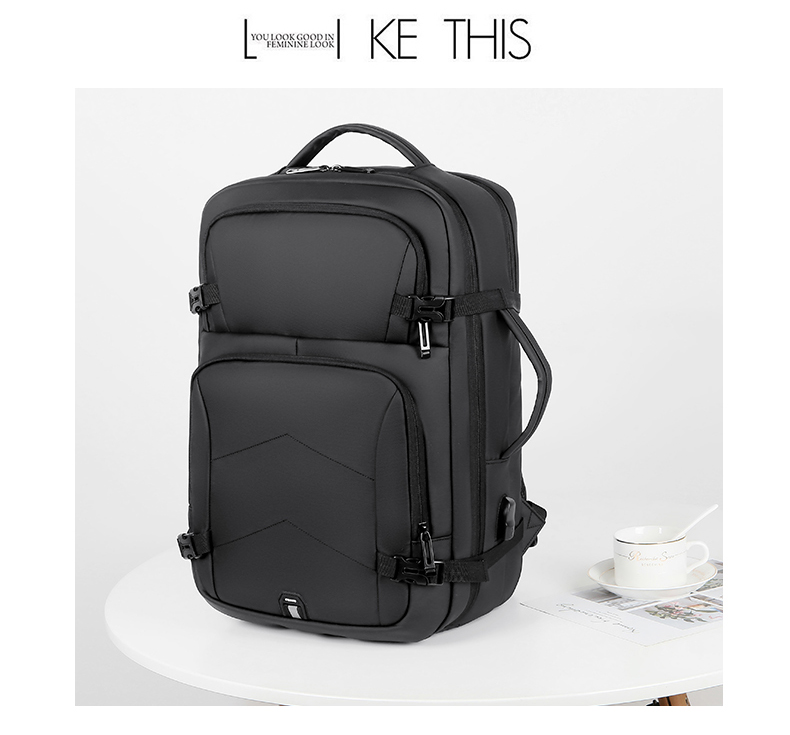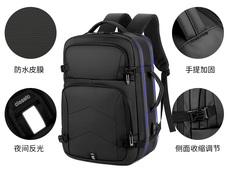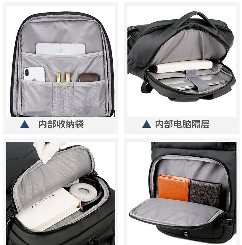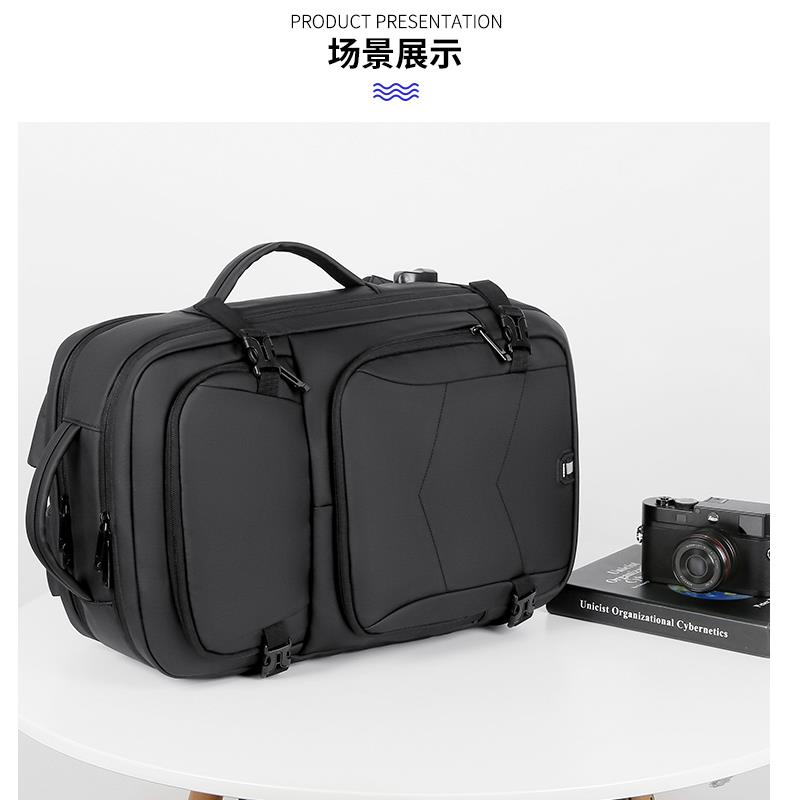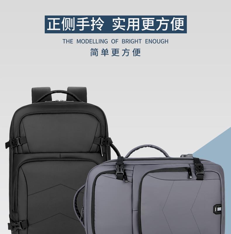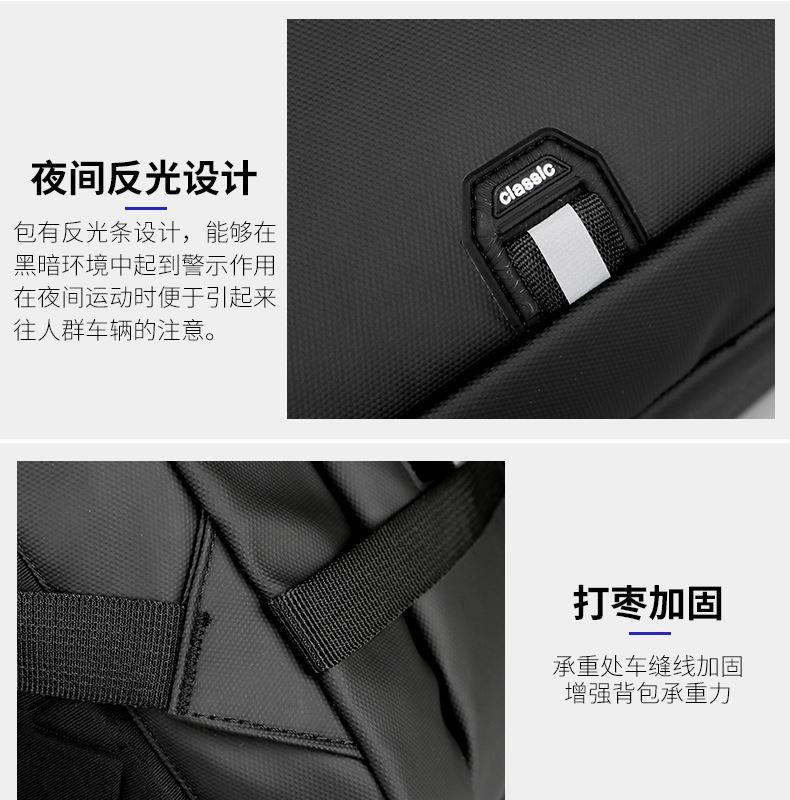 产品参数: 型号:背包3109 颜色:黑,灰 尺寸:30*46*16cm 材质:防水皮膜 重量:0.9kg 商品简介: 商务休闲背包,皮膜材质轻盈且耐磨,正面侧面手提,满足不同的拿取需求,大开合设计,多分区隔层,拉杆固定带,使差旅出行更便捷
