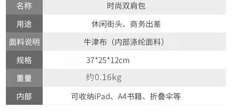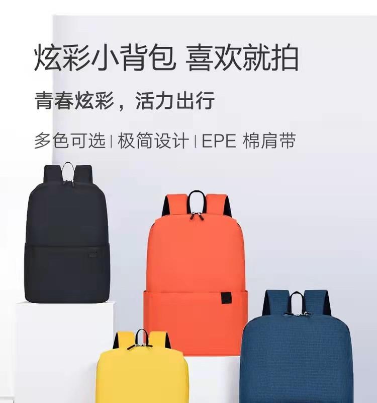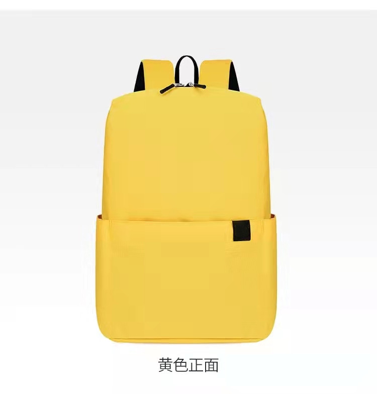 产品参数: 型号:炫彩户外休闲背包3108 颜色:黑色、橙色、深蓝色、黄色 尺寸:34*22*12cm 材质:聚酯纤维(防泼水面料) 重量:约0.16kg 装箱数:200个/箱 商品简介:超轻便捷双肩包,防泼水包身,小身材大容量多款颜色可供选择。