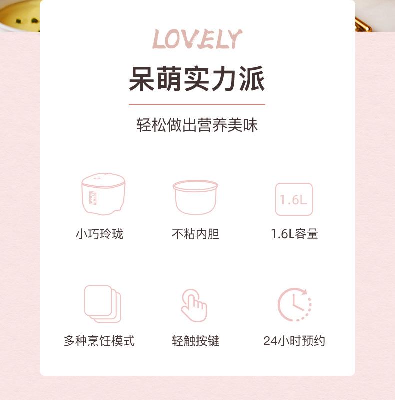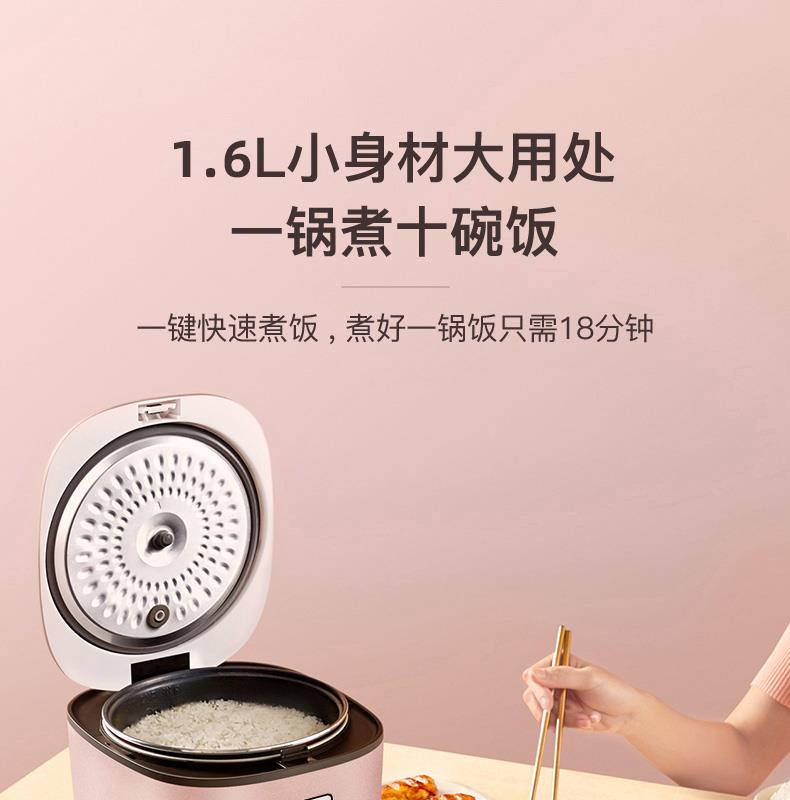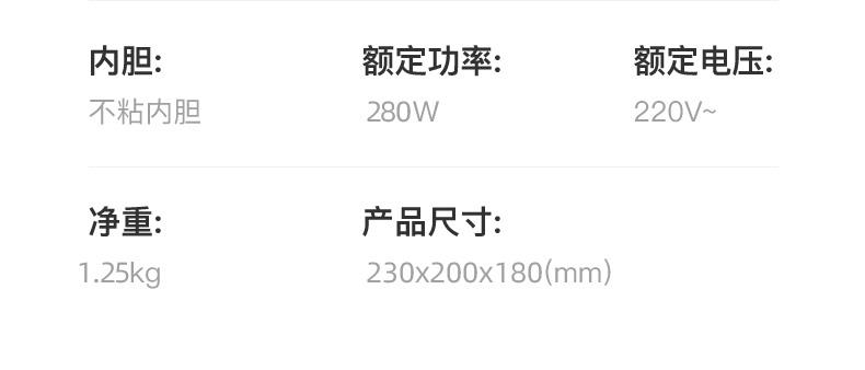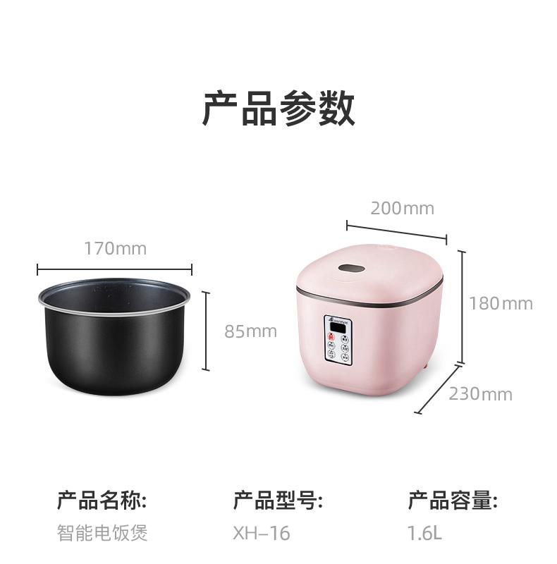 产品型号:XH-16 产品颜色:粉色 产品容量:1.6L 额定功率:400W 额定电压:220V~ 产品毛重:1.8KG 产品尺寸:215*200*180MM 包装尺寸:260*227*226MM 装箱数量:单台为彩盒或网购盒包装箱;8台/箱