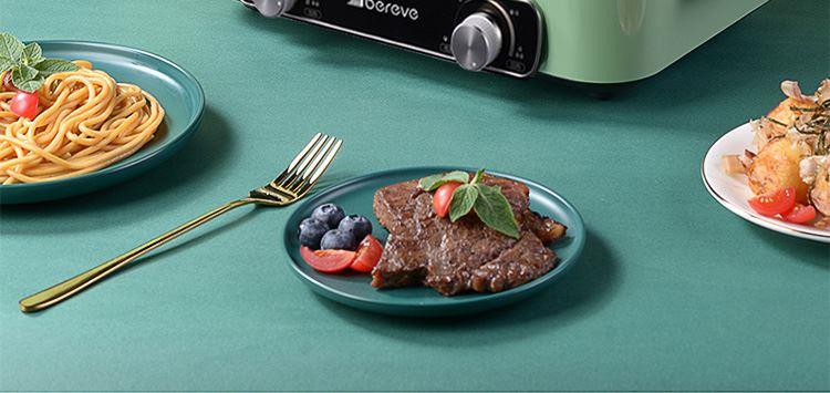 产品型号:LLG-01 产品颜色:白色、红色、蓝色、绿色 主要材质:烤盘、压铸铝 额定功率:1300W 额定电压:110-220V~ 额定频率:50-60Hz 产品毛重:4.5KG/5.1KG/6KG 产品尺寸:405*255*155MM 包装尺寸:465*205*300MM 装箱数量:单台为彩盒包装箱;4台/箱