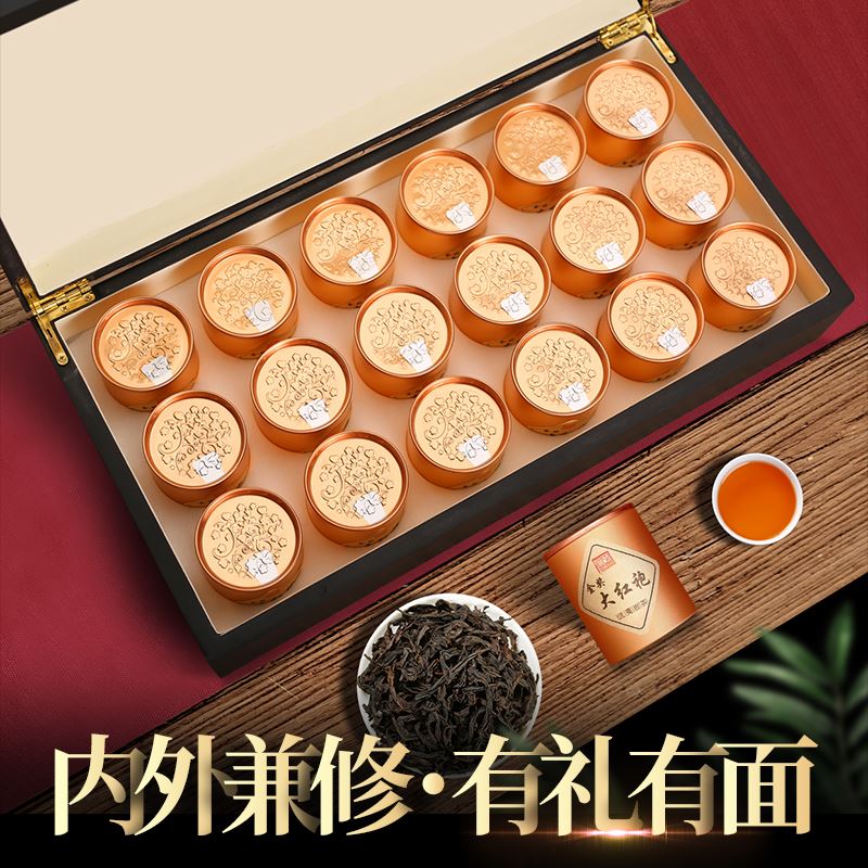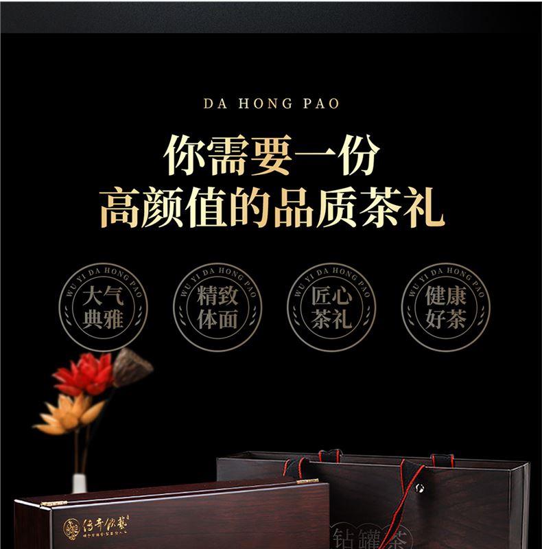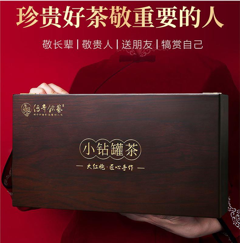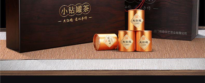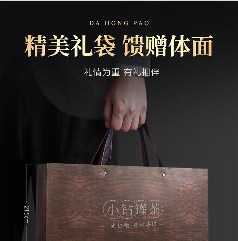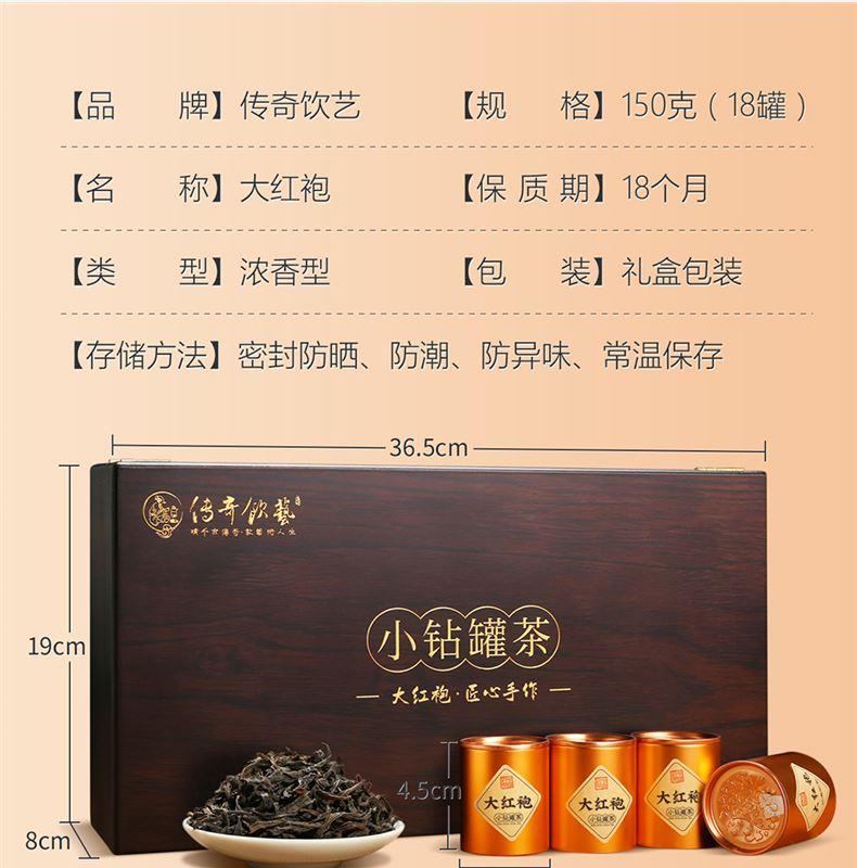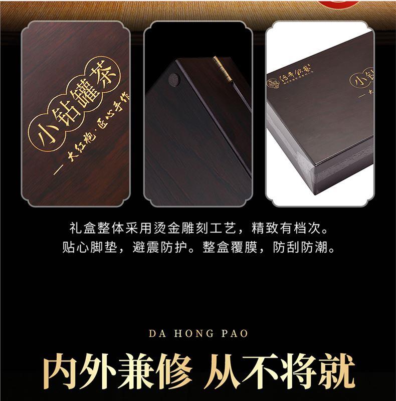商品名称:小钻罐大红袍XZD001 规格:150克(8.35克*18罐) 尺寸:37*9*19.5cm 小钻罐大红袍礼盒装净含量:150克(8.35克*18罐),18罐精装,档次十足,豪气大礼,珍贵好茶敬重要的人,高山原产,核心产地,生态茶园好料,干茶因为细选,所以形美,茶汤因为地道,所以醇厚,叶底,因为艺好,所以匀整,浓香耐泡,八泡有余香,每一罐都是优选品,您需要一份高颜值的品质茶礼