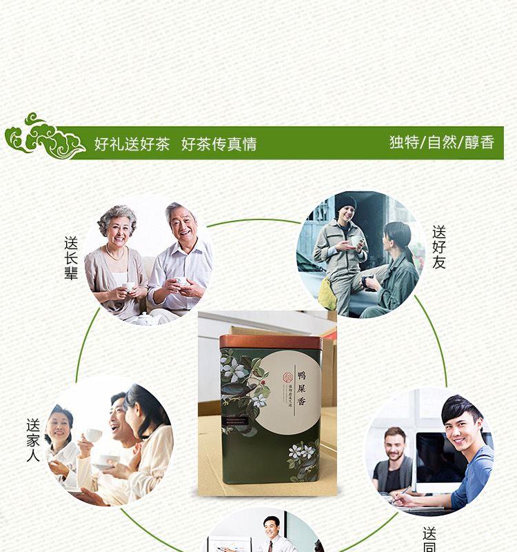 商品名称:听丛凤凰单丛鸭屎香茶500g 单位:罐装 规格:500g 货号:MDHZ0801 鸭屎香茶有生津止渴、提神醒脑、美容瘦身等功效。鸭屎香茶又名银华香,属于乌龙茶品种。它香若幽兰,清新怡人,生津止渴效果显著。所含的咖啡碱可以让中枢神经兴奋,达到提神醒脑的功效,常喝还可以促进消化,去脂瘦身,活性氧还会让肌肤更滋润……因此,如果说凤凰单丛茶是茶中香水,那么鸭屎香单丛的香气是单丛茶里的贵族,但又很亲民随和,一碰上它就十分喜欢!