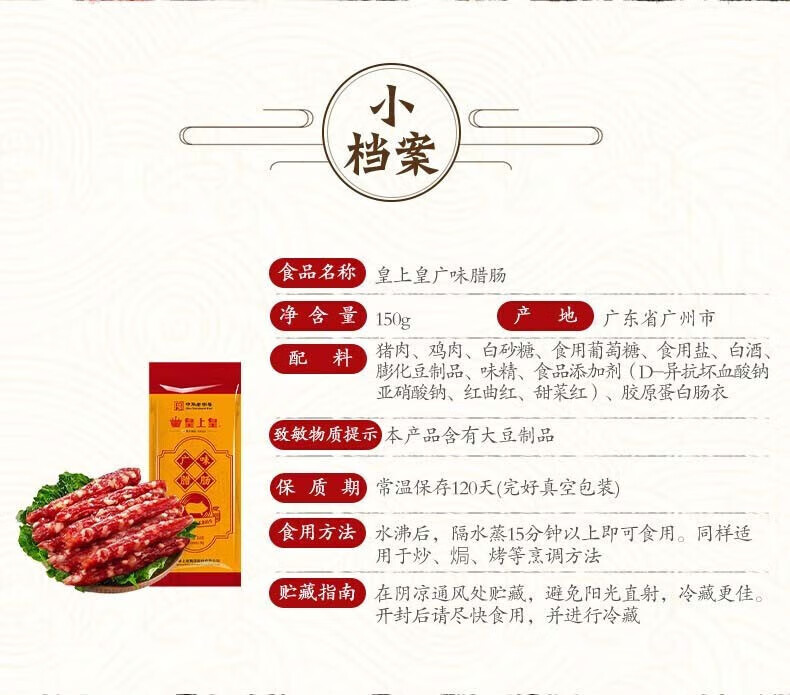 皇上皇腊肠中华400g添福腊肠【五五肥瘦】