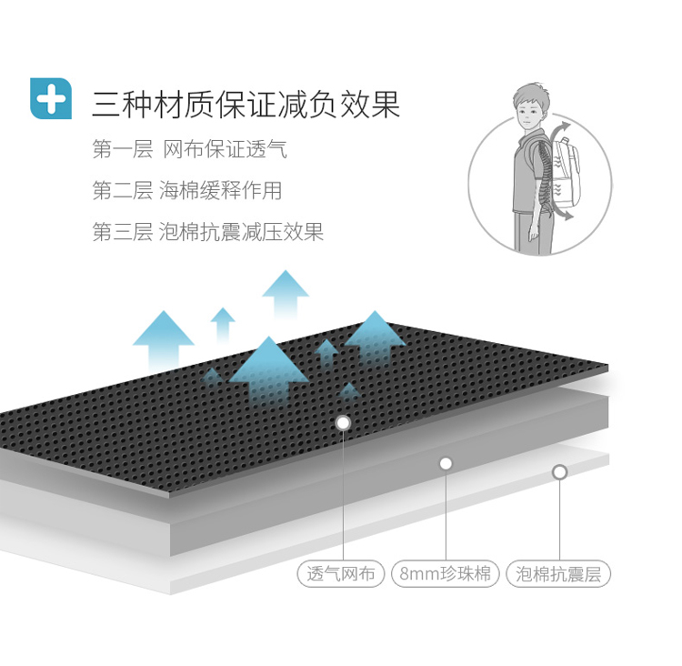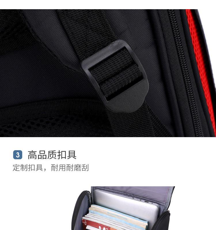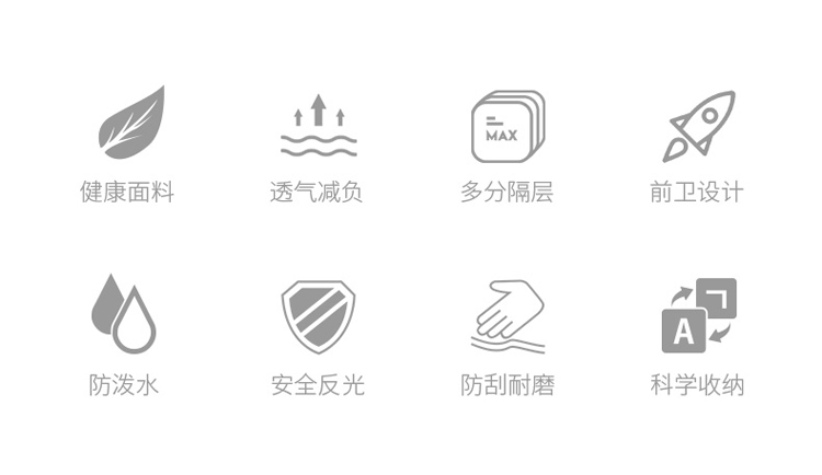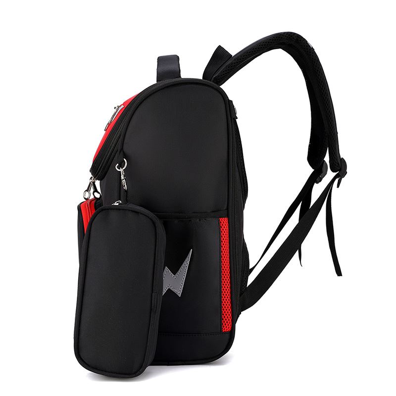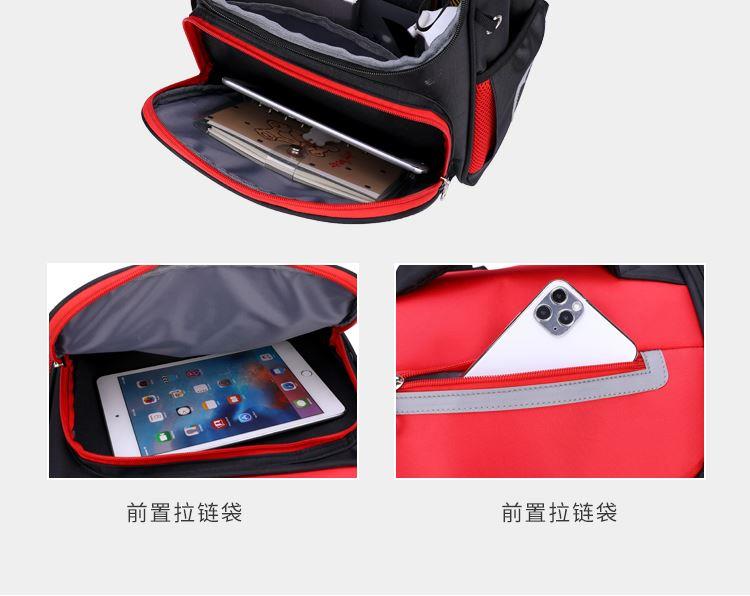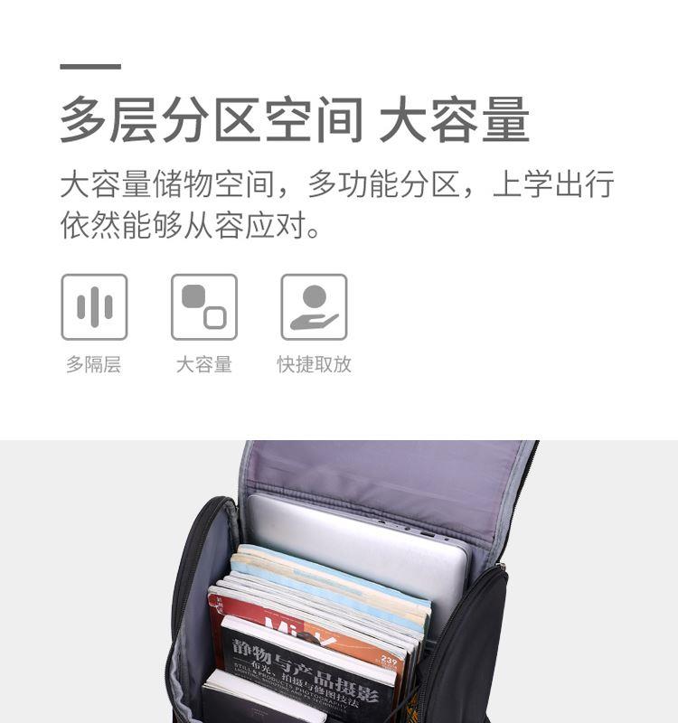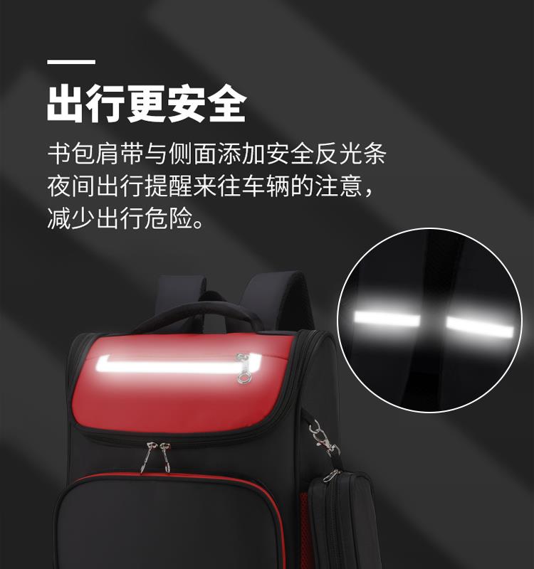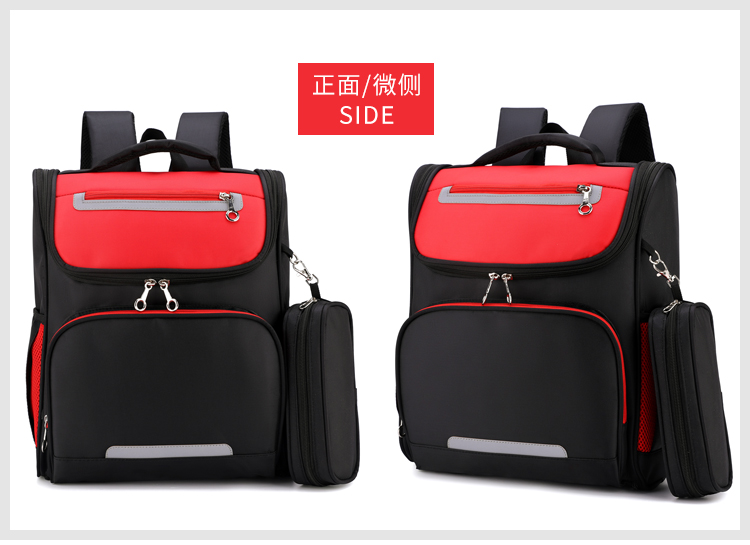 产品参数: 型号:儿童书包3202 颜色:黄蓝、粉蓝、黑红、橙灰 尺寸:30*16*38cm 材质:高密度尼龙面料 内部:有隔层 重量:0.45kg 商品简介: 防泼水面料,轻盈材质,人体工学设计,减负护脊。轻松上学,不要负担。书包肩带与侧面添加安全反光条的设计,让宝宝的出行更加安全。