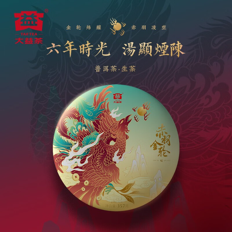 大益普洱茶饼茶六年陈料赤羽金轮生茶357g/饼茶叶礼盒