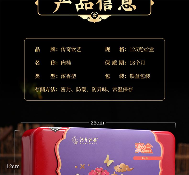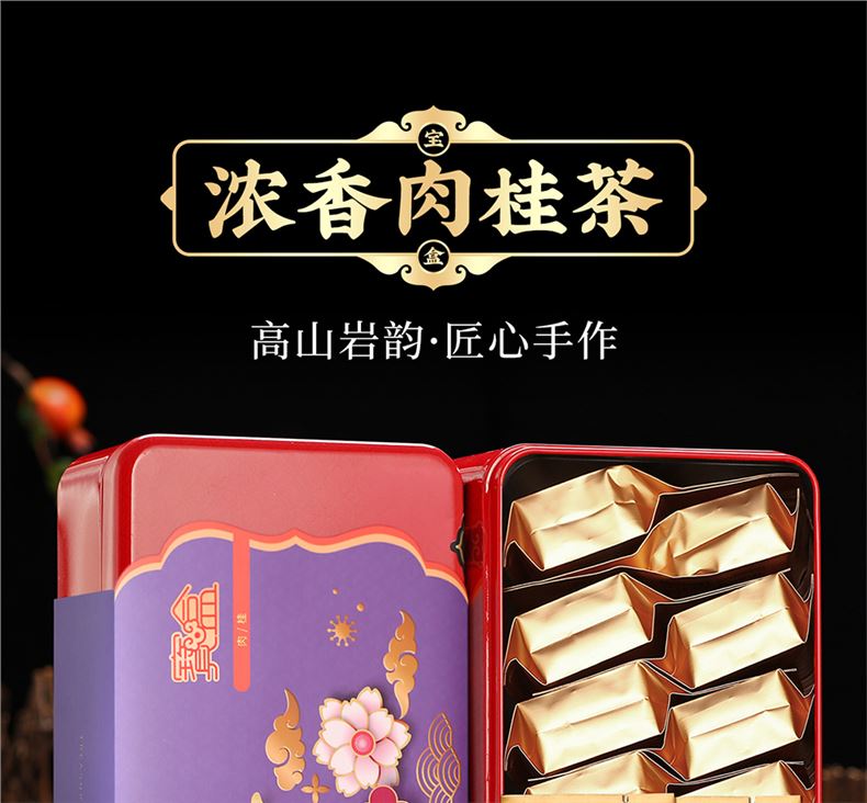商品名称:宝盒系列肉桂R2 规格:250克(125克/盒*2盒配一提手提袋) 尺寸:28.5*24.5*15cm 岩茶肉桂R2(125克/盒*2盒共30泡,配一提手提袋)浓香肉桂茶,高山岩韵,匠心手作,份量满满,30泡独立装,实惠居家,条索紧结,滋味醇厚,叶片匀整,创意家居,包装新花样,秒变纸巾盒
