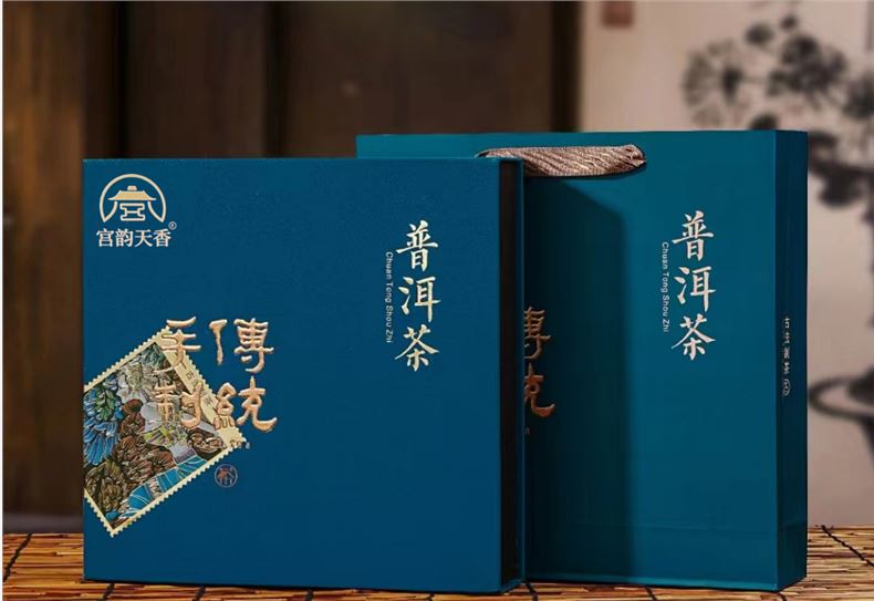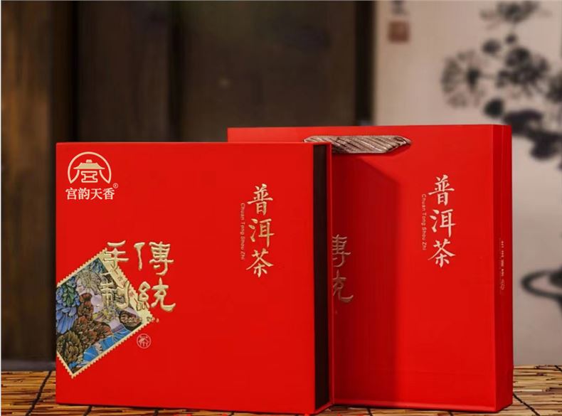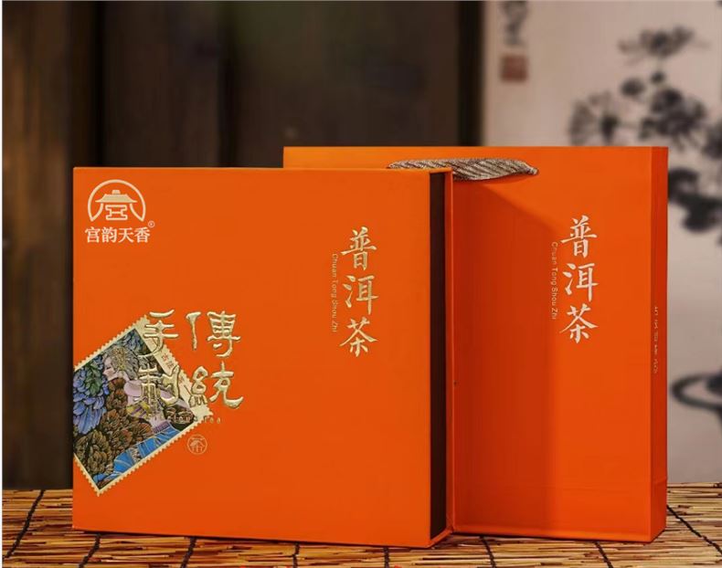 品种:七子饼普洱(2019熟普) 原料:云南 大叶晒青毛茶 净量:357克 礼盒:280*260*50mm 每件套数:32套