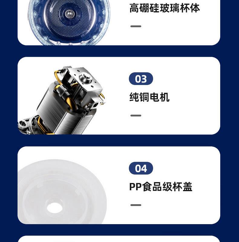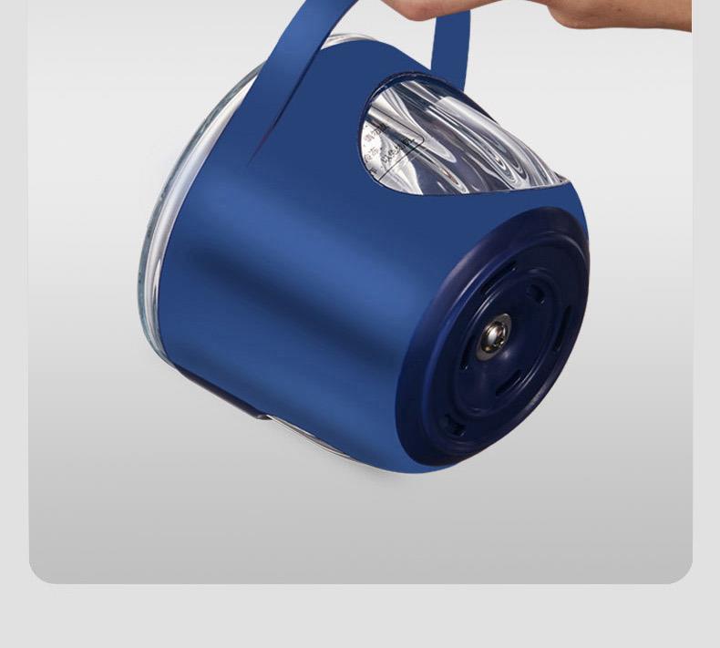 产品型号:ABL-JR18 产品颜色:蓝色 额定功率:200W 额定容量:0.3L 额定电压:220V 额定频率:50Hz 产品材质:PP+玻璃+304不锈钢 产品重量:1.1KG 产品尺寸:100*100*190MM 包装尺寸:245*140*165MM 装箱数量:单台为彩盒包装箱;12个/箱