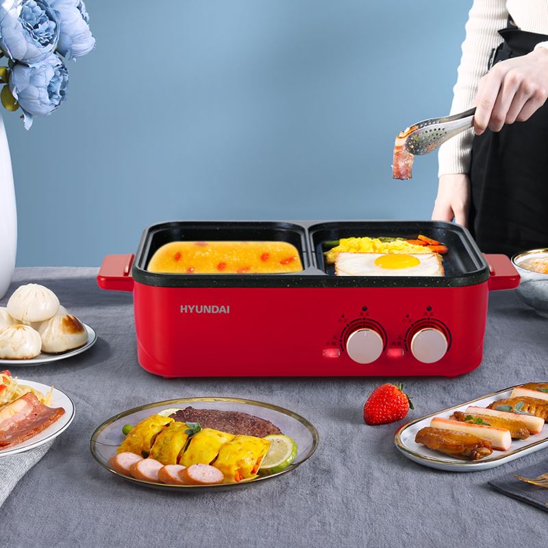 产品颜色:红色 产品容量:1.7L(火锅盘:1.3L 、煎盘:400ml) 产品尺寸:370*230*140mm