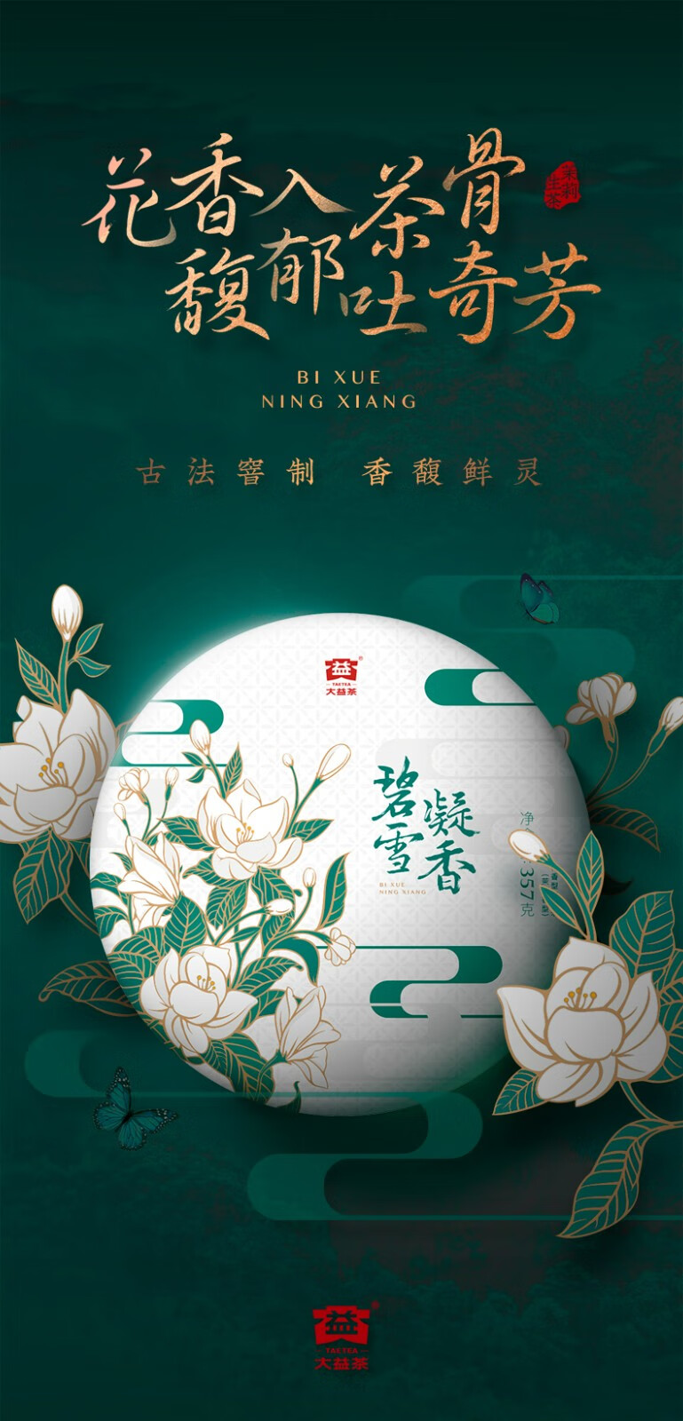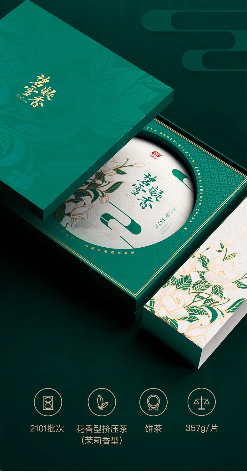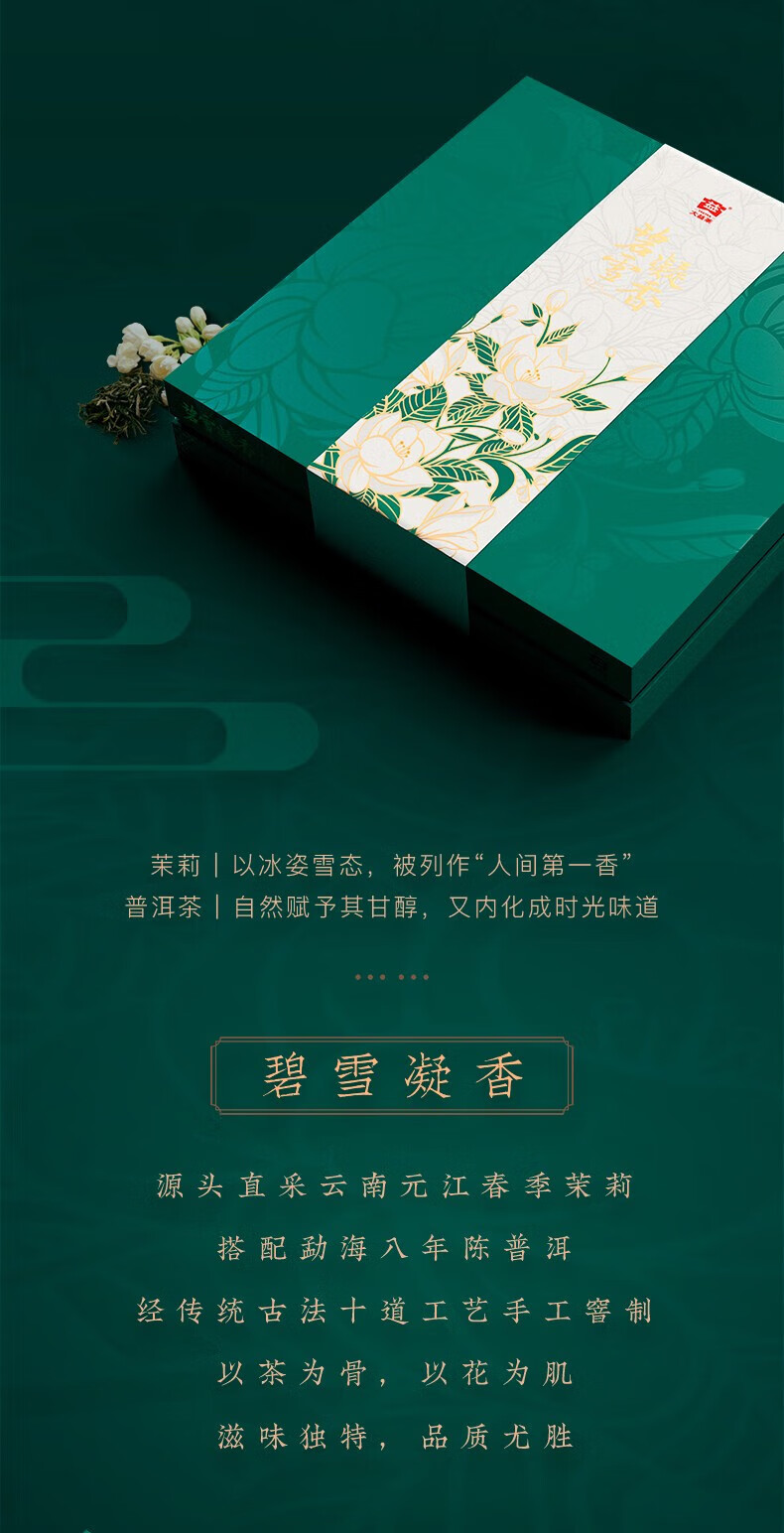 商品名称:大益普洱茶碧雪凝香茉莉生饼普洱礼盒单饼装357g*1盒