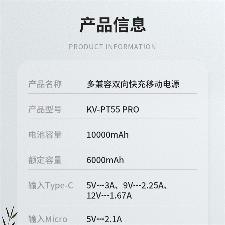 品牌:Kivee 产品名称:移动电源 产品型号:KV-PT55pro 69码:6941256115466/6941256115473