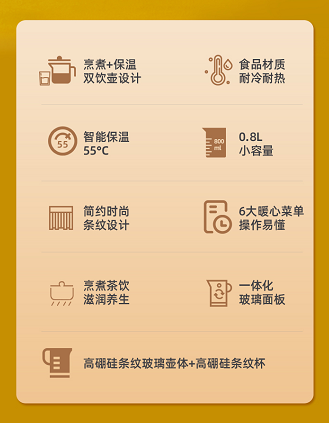 产品型号:RS-GL10T1 额定电压:220V~ 额定功率:600W 产品容量:0.8L 产品材质: PP、高硼硅 商品条码:6941220246141