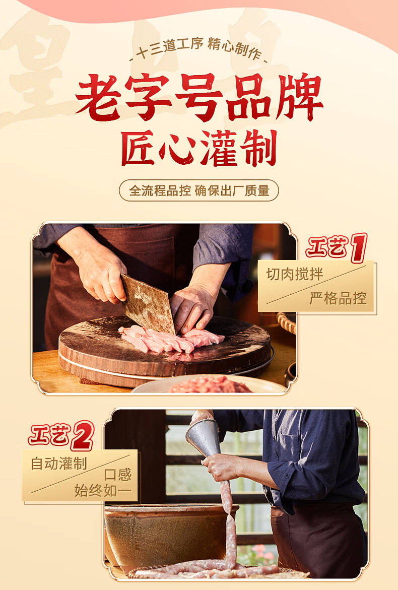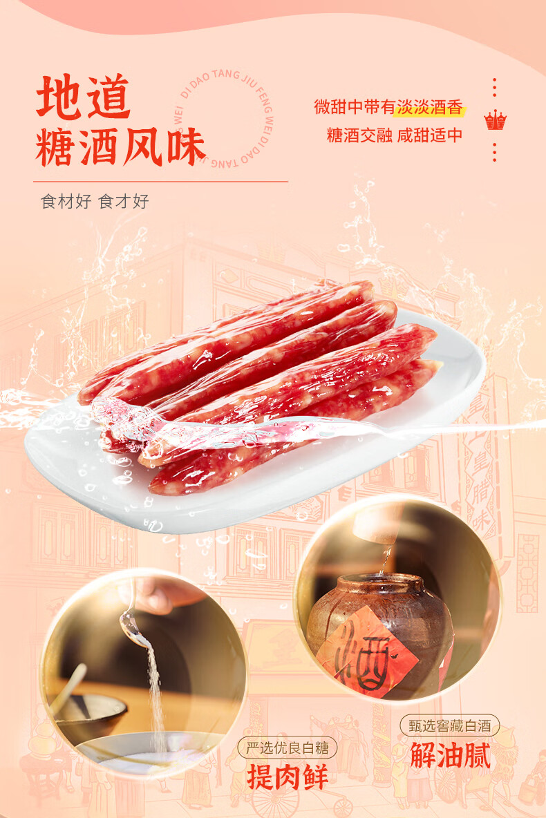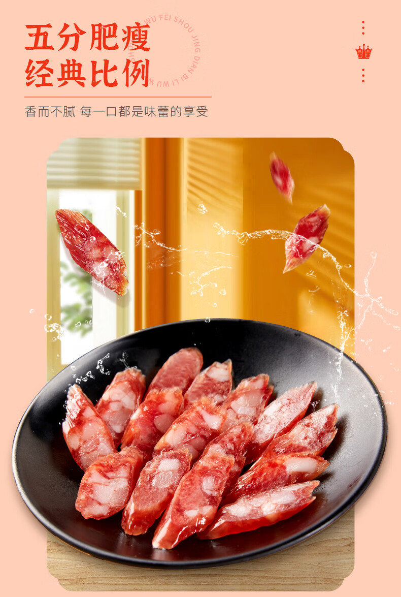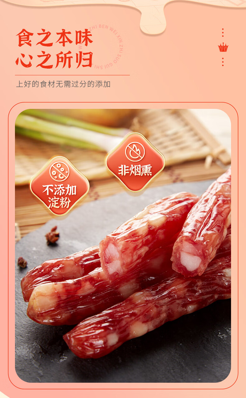 特产品类;广式腊肠 包装形式;袋装 食用方法;烹饪食用 加工工艺;不烟熏 保质期;120天