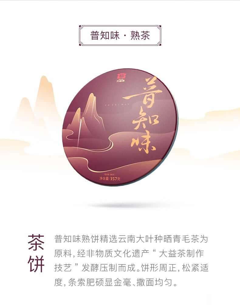 商品名称:大益茶叶普洱茶 普知味熟茶礼盒装357g 商务礼赠