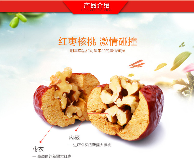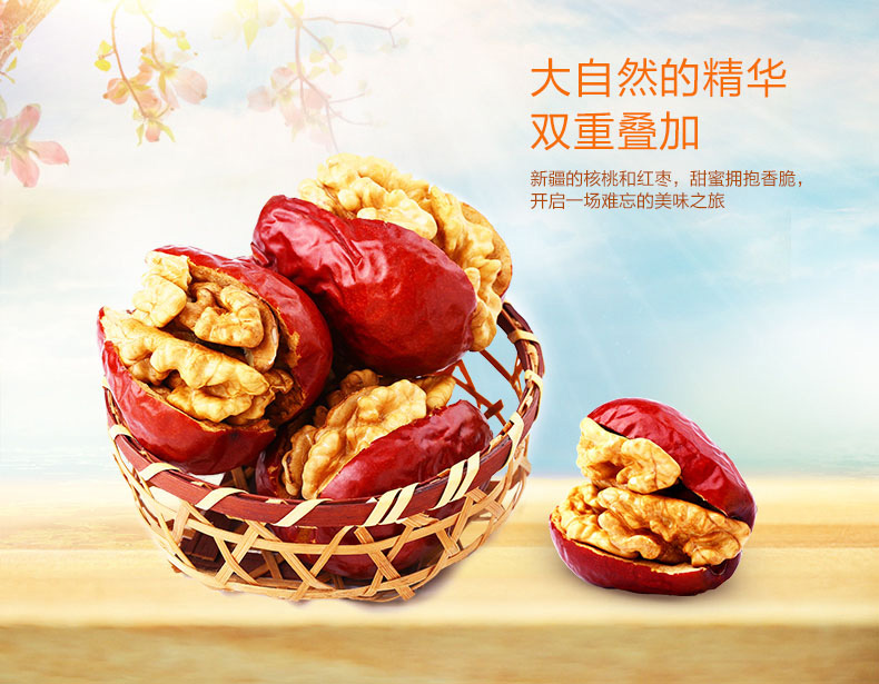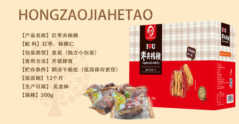 彩盒尺寸:290*120*170mm 产品规格:500克(独立小包装) 内配:1.新疆和田大枣 2.新疆核桃