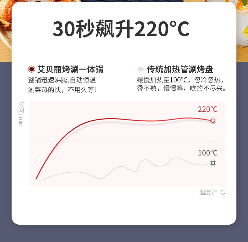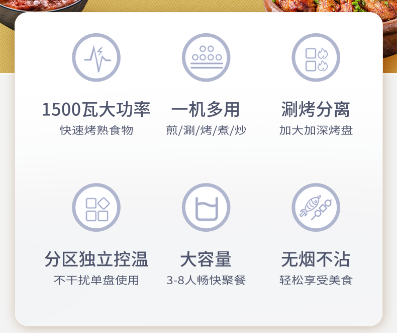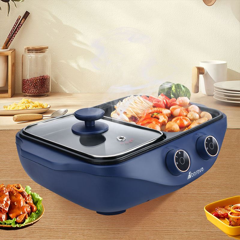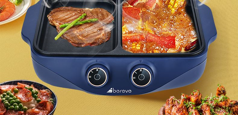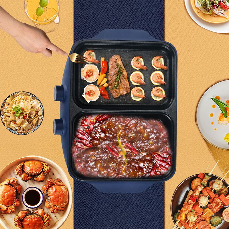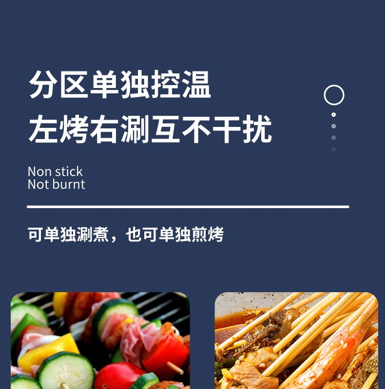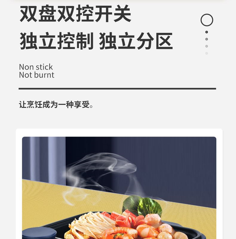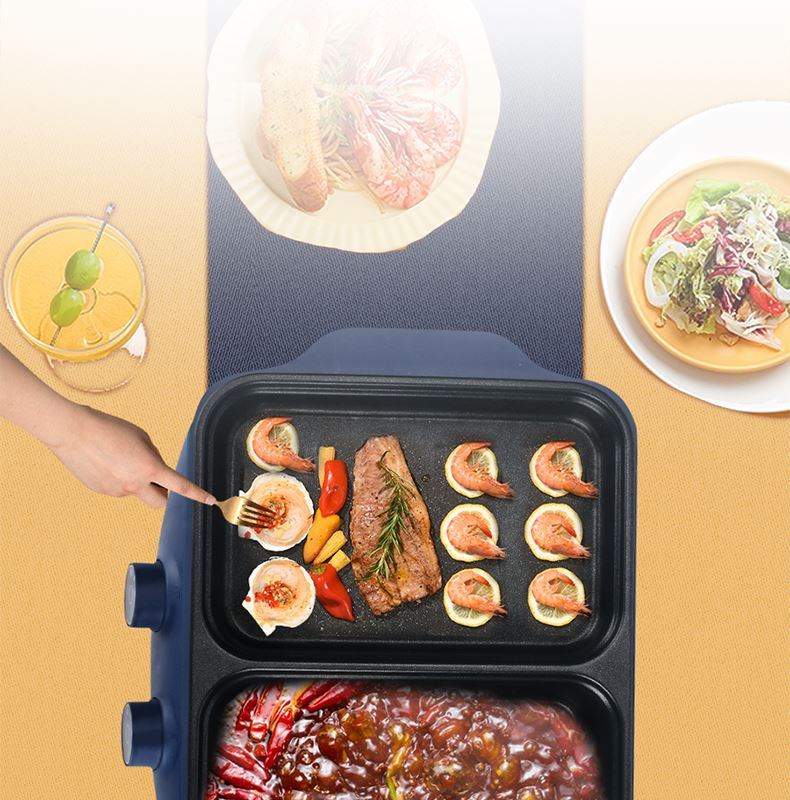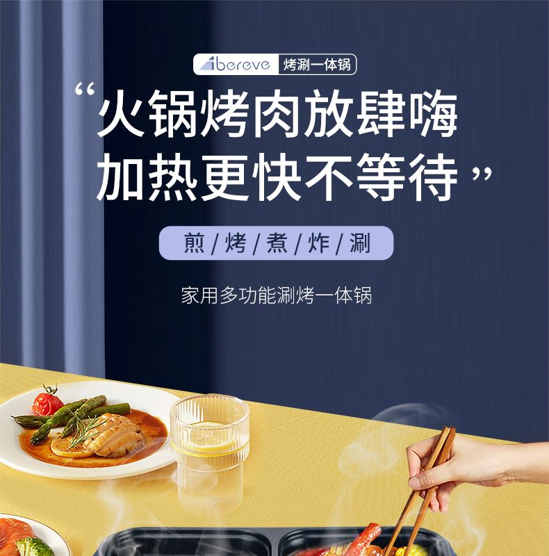 产品型号:ABL-HG08 产品颜色:蓝色 额定功率:1500W 额定容量:涮锅800ml,煎锅200ml 额定电压:220V~ 额定频率:50Hz 产品毛重:1.8KG 产品尺寸:340*253*130mm 包装尺寸:360*285*140mm 装箱数量:单台为彩盒包装箱;8台/箱