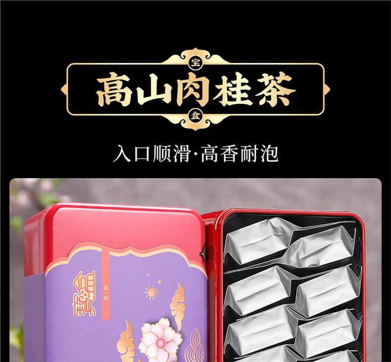商品名称:宝盒系列肉桂R5 规格:250克(125克/盒*2盒配一提手提袋) 尺寸:28.5*24.5*16cm 岩茶肉桂R5(125克/盒*2盒共30泡,配一提手提袋)浓香肉桂茶,高山岩韵,匠心手作,份量满满,30泡独立装,实惠居家,条索紧结,香气悠长,浓香耐泡,创意家居,包装新花样,秒变纸巾盒