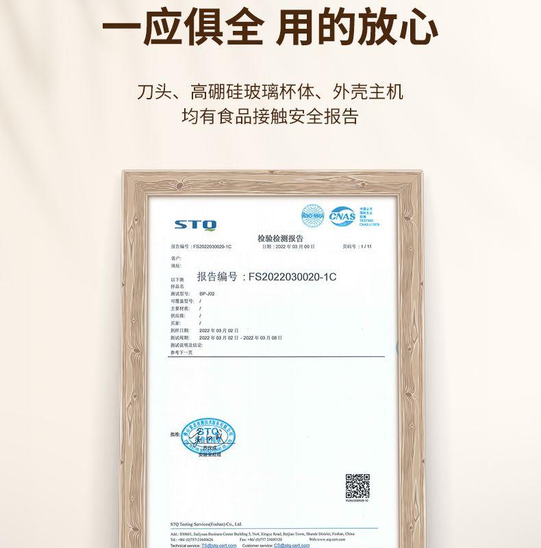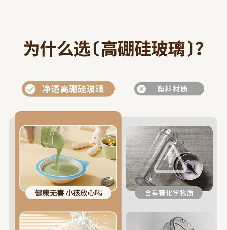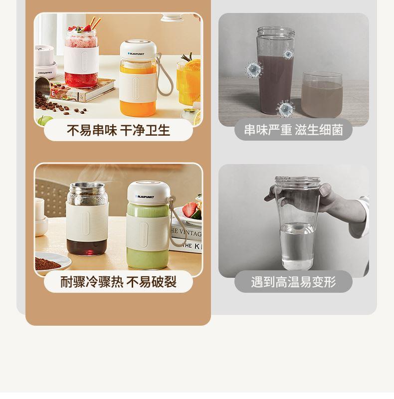 材质:高硼硅玻璃+食品接触用硅胶+四叶不锈钢刀片
